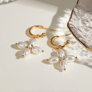 ステンレス304 低ニッケル 水に濡れても錆びにくい 18Kゴールドメッキ ピアス パール 花 フラワー【YJ03373】