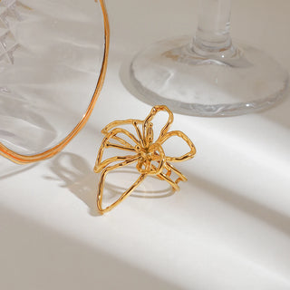 ステンレス304 低ニッケル 水に濡れても錆びにくい 18Kゴールドメッキ リング 花 フラワー【YJ01124】