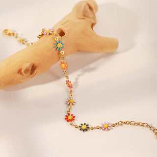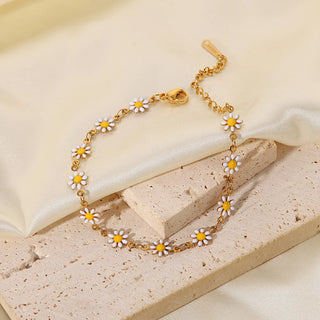 ステンレス304 低ニッケル 水に濡れても錆びにくい 18Kゴールドメッキ ブレスレット チェーン フラワー 花 【YJ01895】