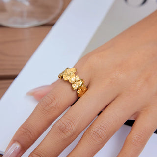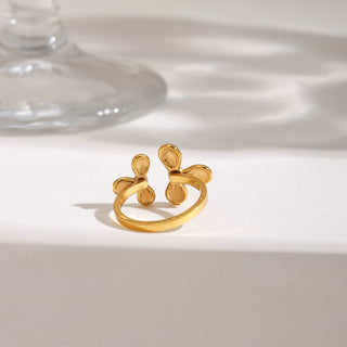 ステンレス304 低ニッケル 水に濡れても錆びにくい 18Kゴールドメッキ リング 花 フラワー【YJ01102】