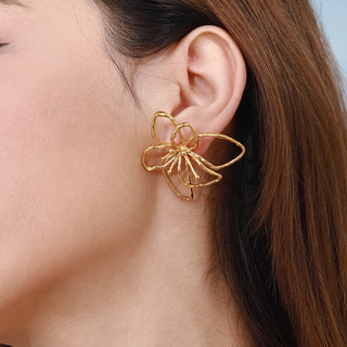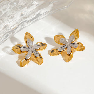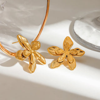 ステンレス304 ニッケルフリー 水に濡れても錆びにくい 18Kゴールドメッキ ピアス フラワー 花 【YJ00969】