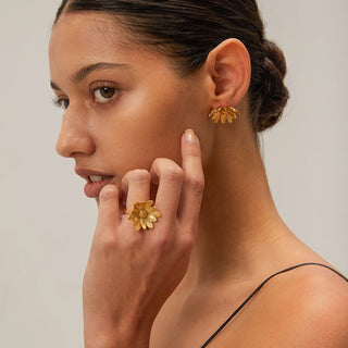 ステンレス304 低ニッケル 水に濡れても錆びにくい 18Kゴールドメッキ リング フラワー 花 【YJ01902】