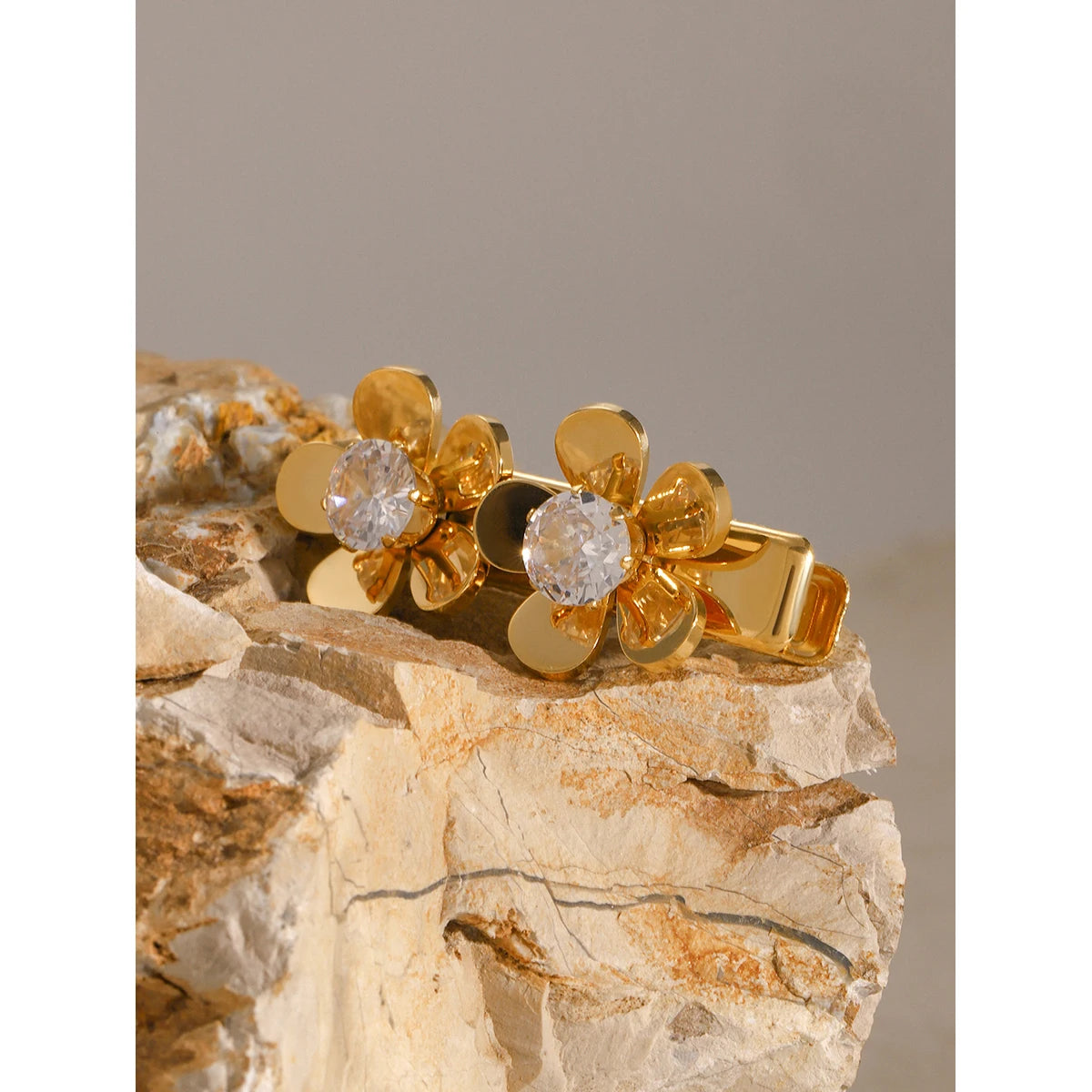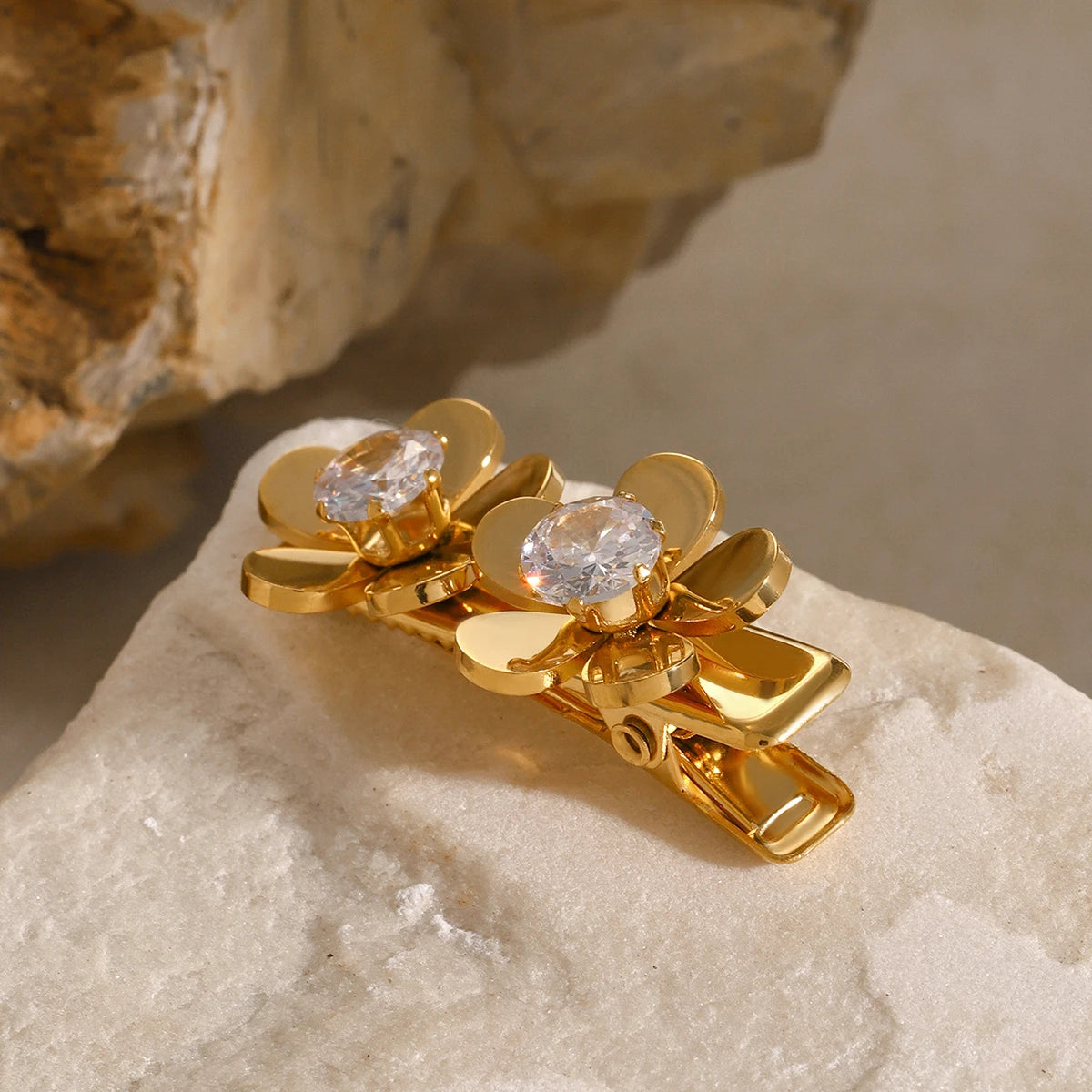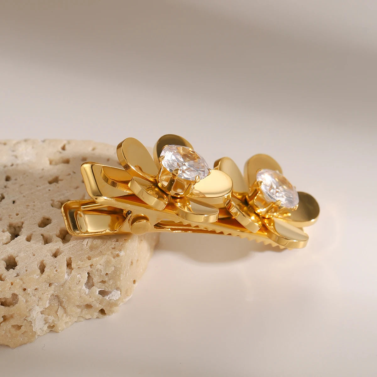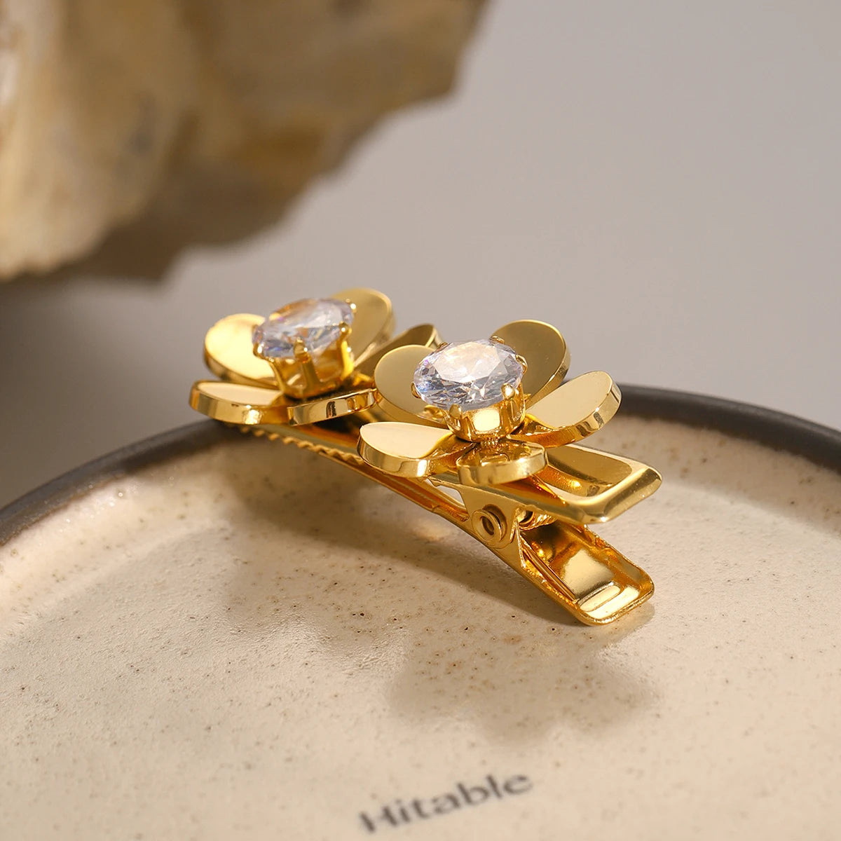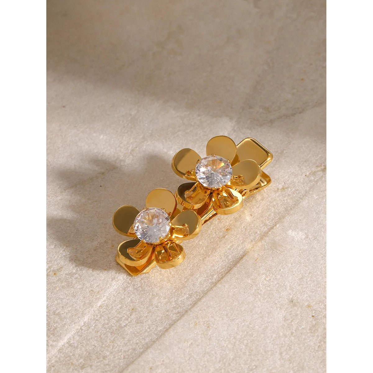ステンレス304 低ニッケル 水に濡れても錆びにくい 18Kゴールドメッキ ヘアアクセサリー 花 フラワー 【YJ01869】