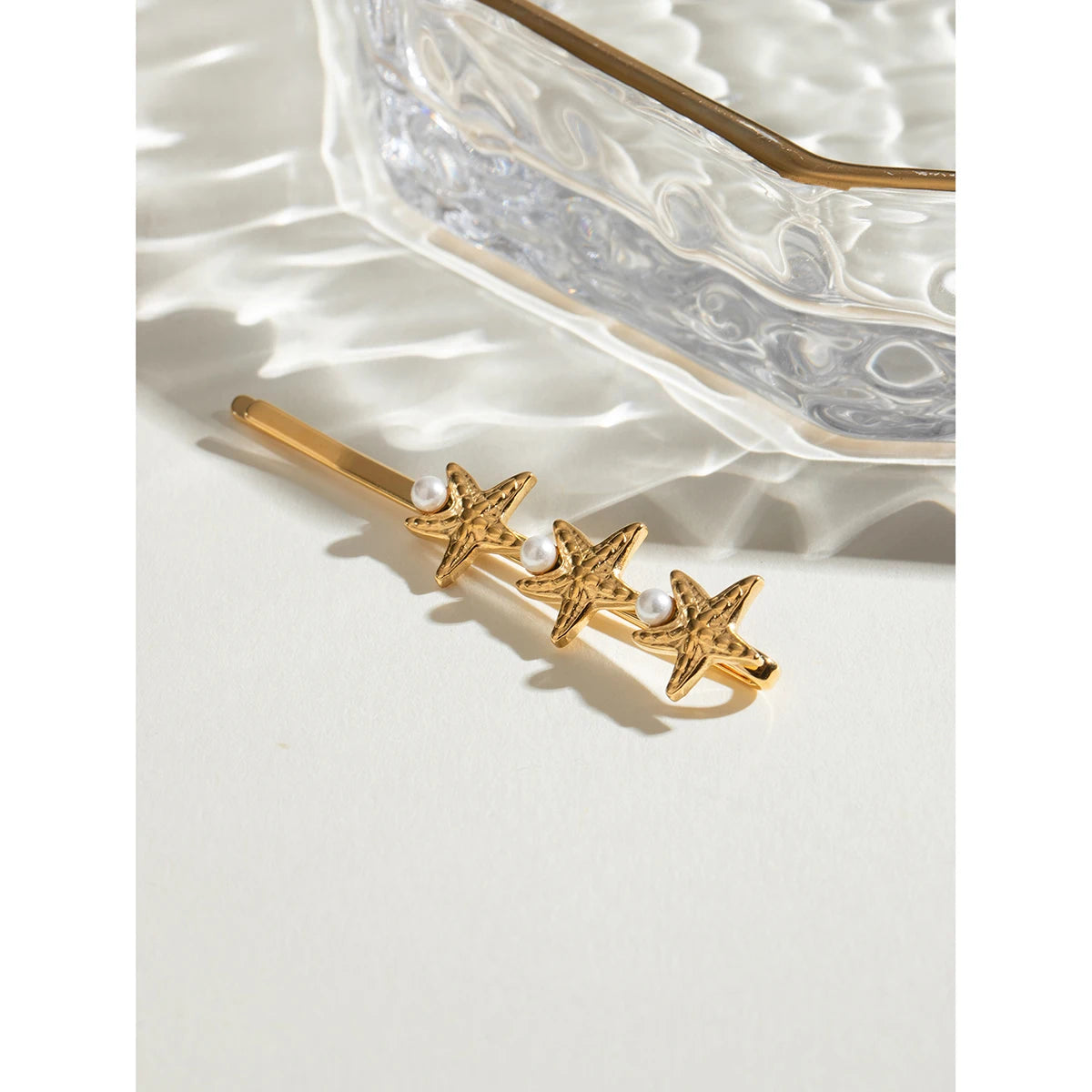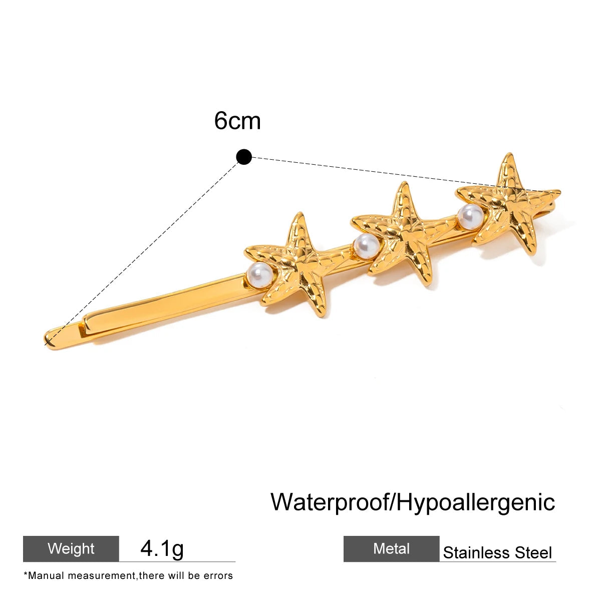 ステンレス304 低ニッケル 水に濡れても錆びにくい 18Kゴールドメッキ ヘアアクセサリー ヒトデ パール 【YJ01870】