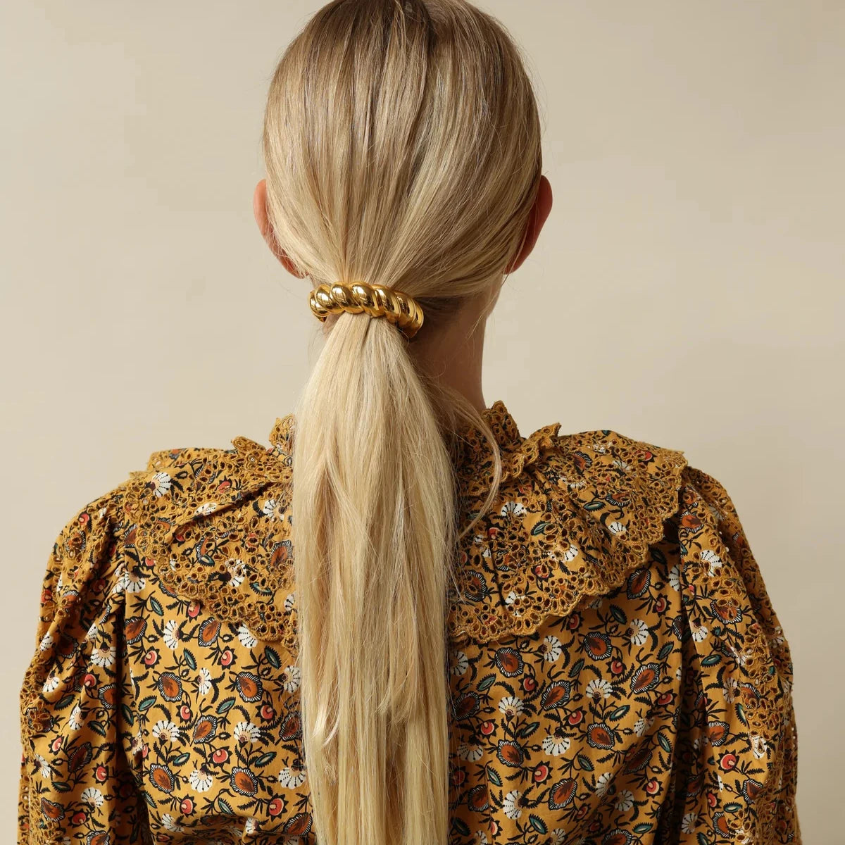 ステンレス304 低ニッケル 水に濡れても錆びにくい 18Kゴールドメッキ ヘアアクセサリー チャンキー ツイスト 【YJ02842】