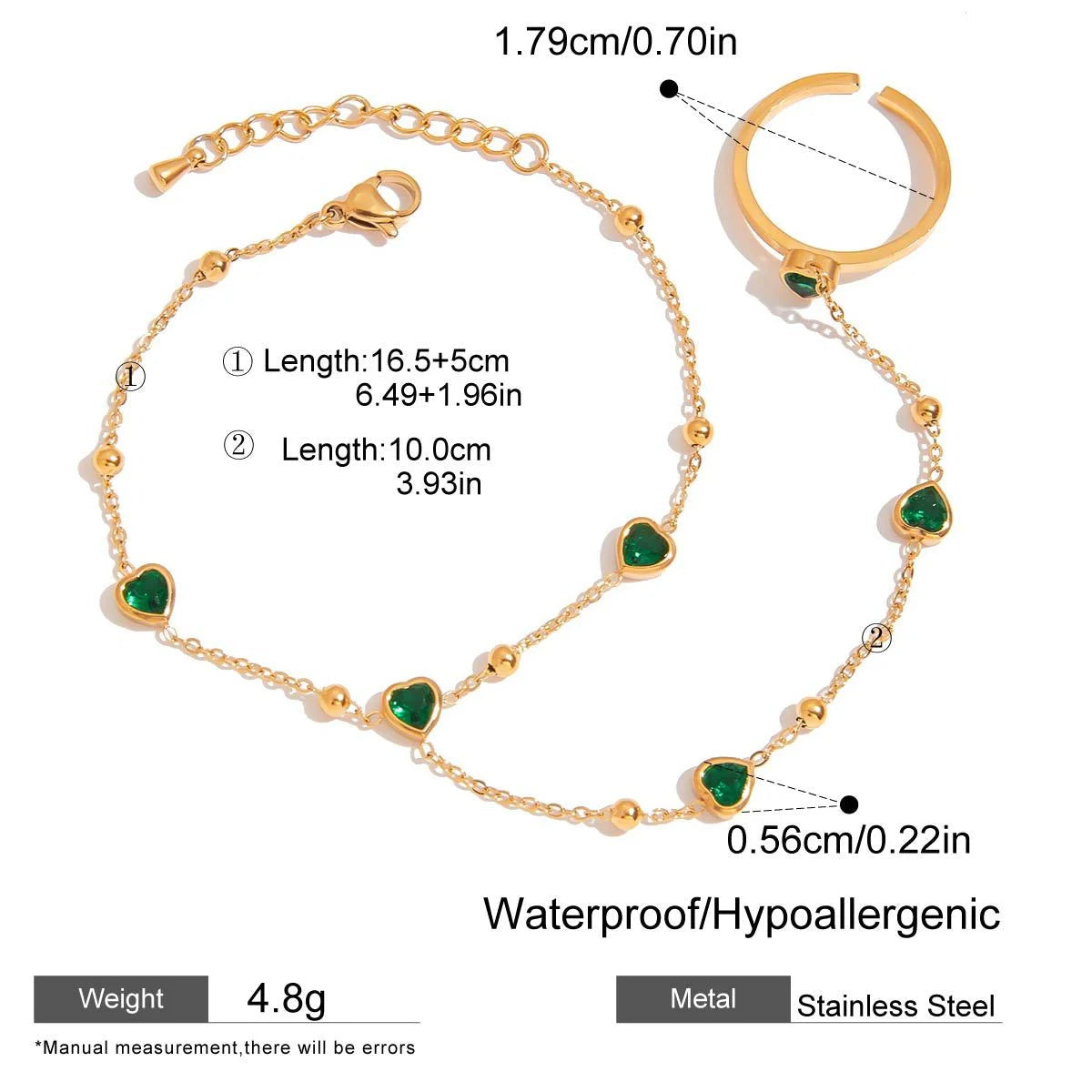 ステンレス304 ニッケルフリー 水に濡れても錆びにくい 18Kゴールドメッキ ハンドチェーン ブレスレット ハート ジルコニア 【YJ00042】