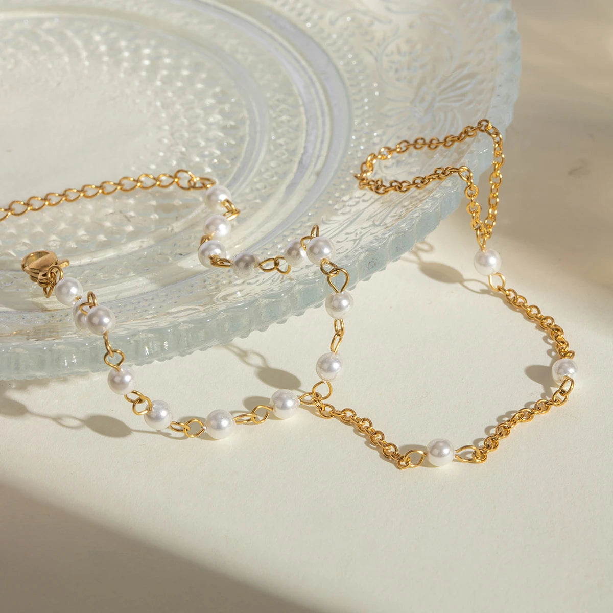 ステンレス304 ニッケルフリー 水に濡れても錆びにくい 18Kゴールドメッキ ハンドチェーン ブレスレット パール 【YJ00552】
