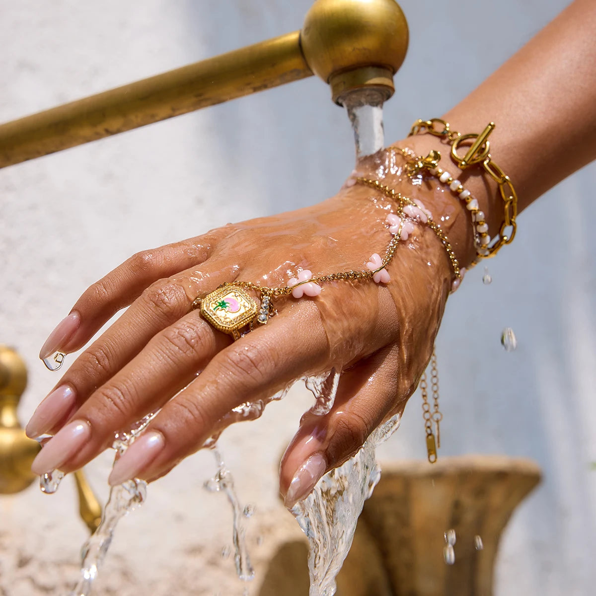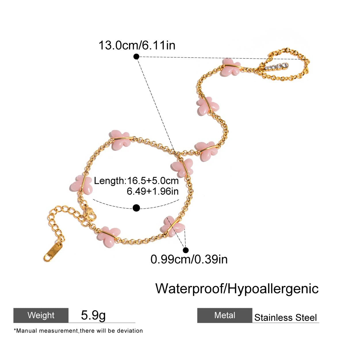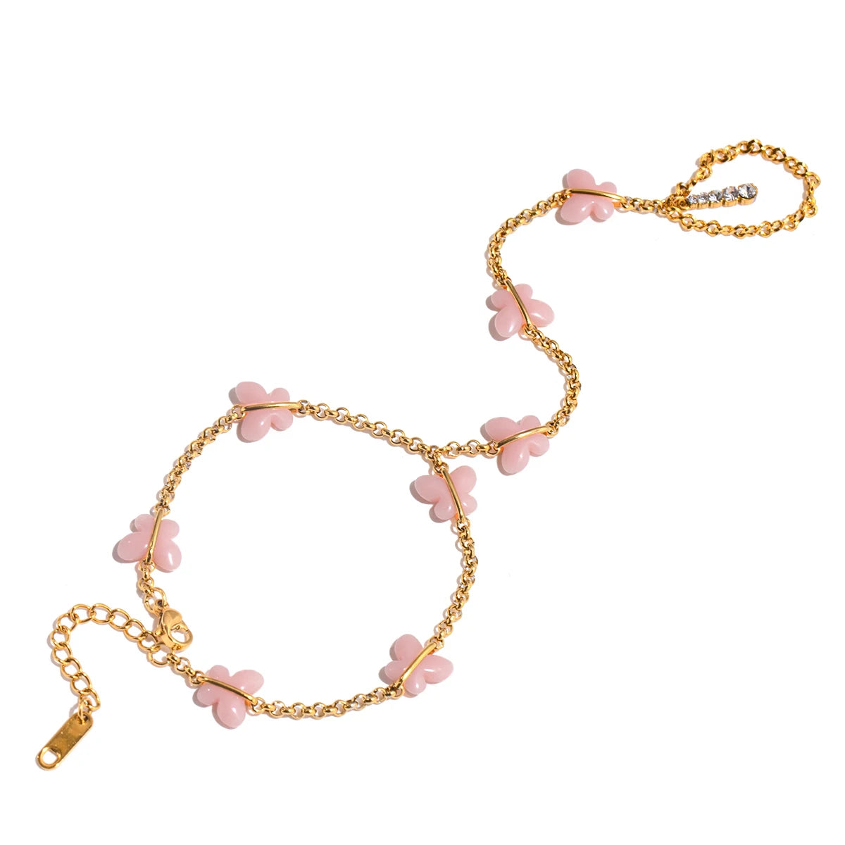 ステンレス304 低ニッケル 水に濡れても錆びにくい 18Kゴールドメッキ ブレスレット ハンドチェーン 蝶々 バタフライ 【YJ01028】