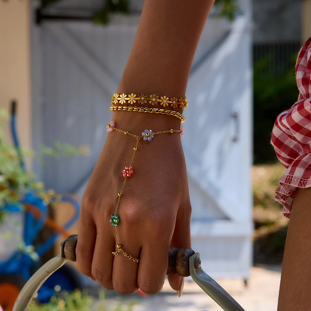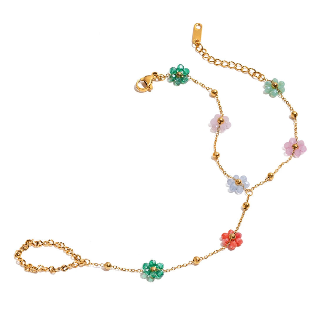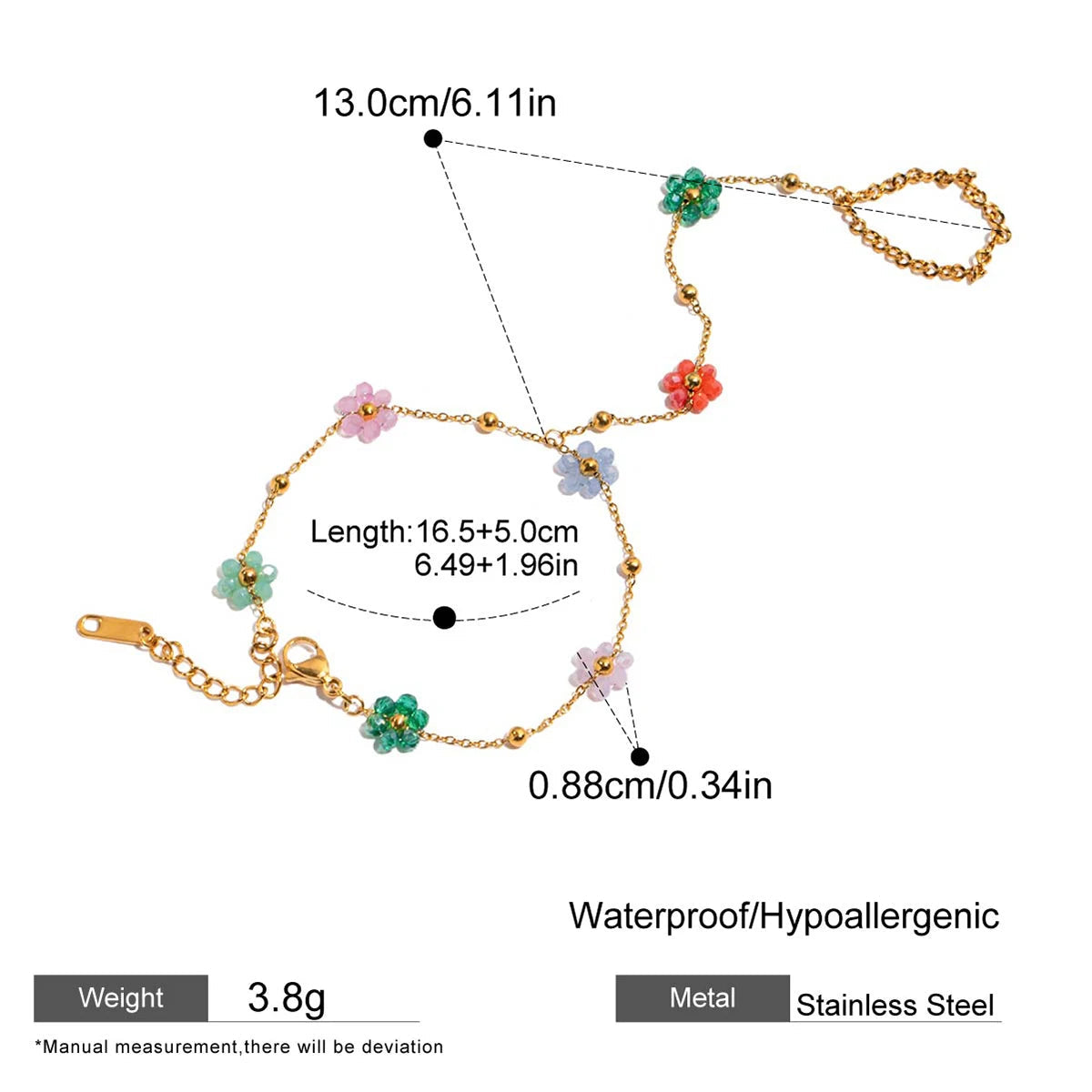 ステンレス304 低ニッケル 水に濡れても錆びにくい 18Kゴールドメッキ ブレスレット ハンドチェーン フラワー 花 ビーズ 【YJ01029】