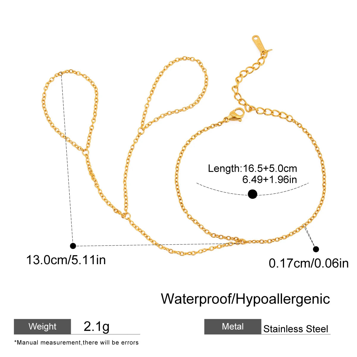 ステンレス304 低ニッケル 水に濡れても錆びにくい 18Kゴールドメッキ ブレスレット ハンドチェーン 【YJ01993】