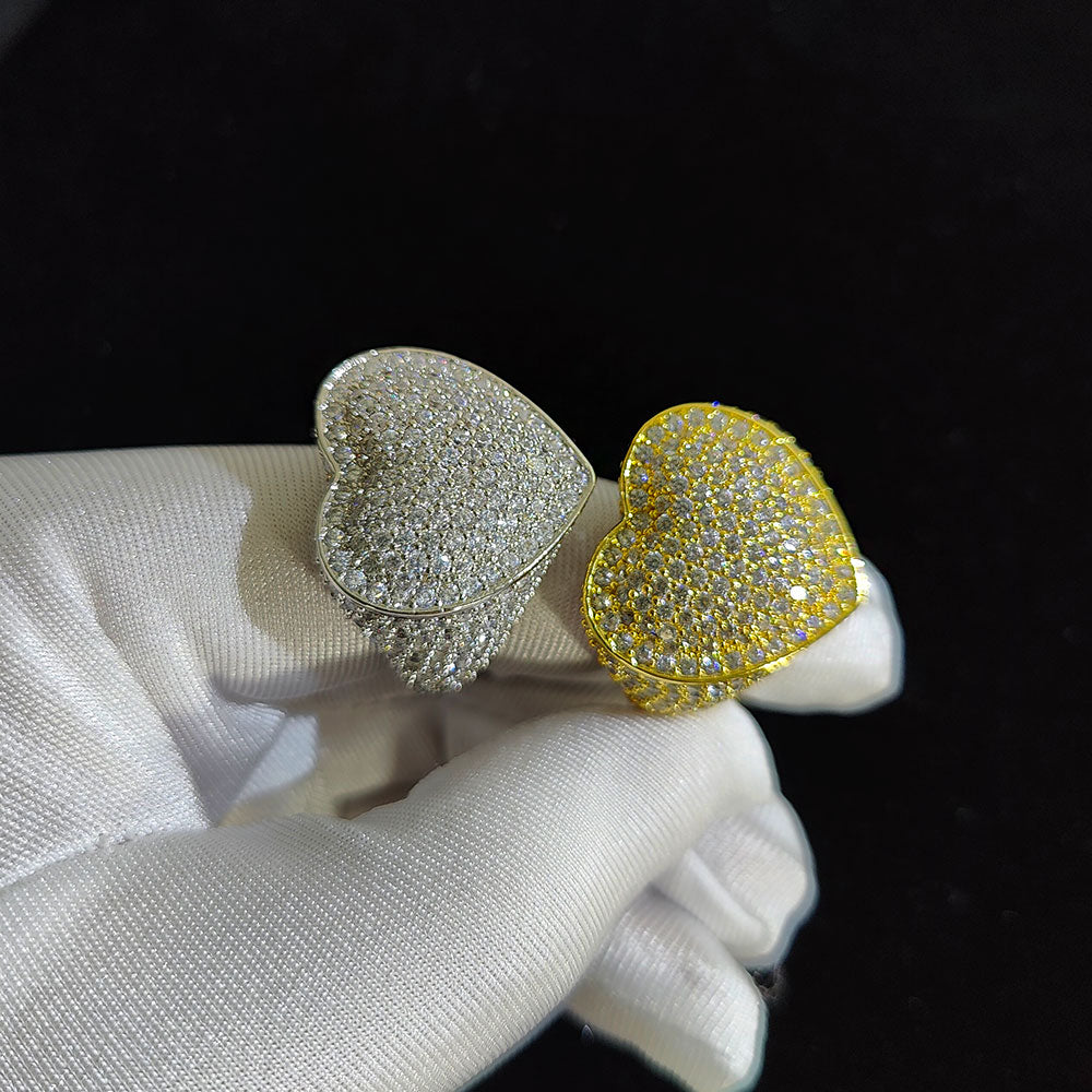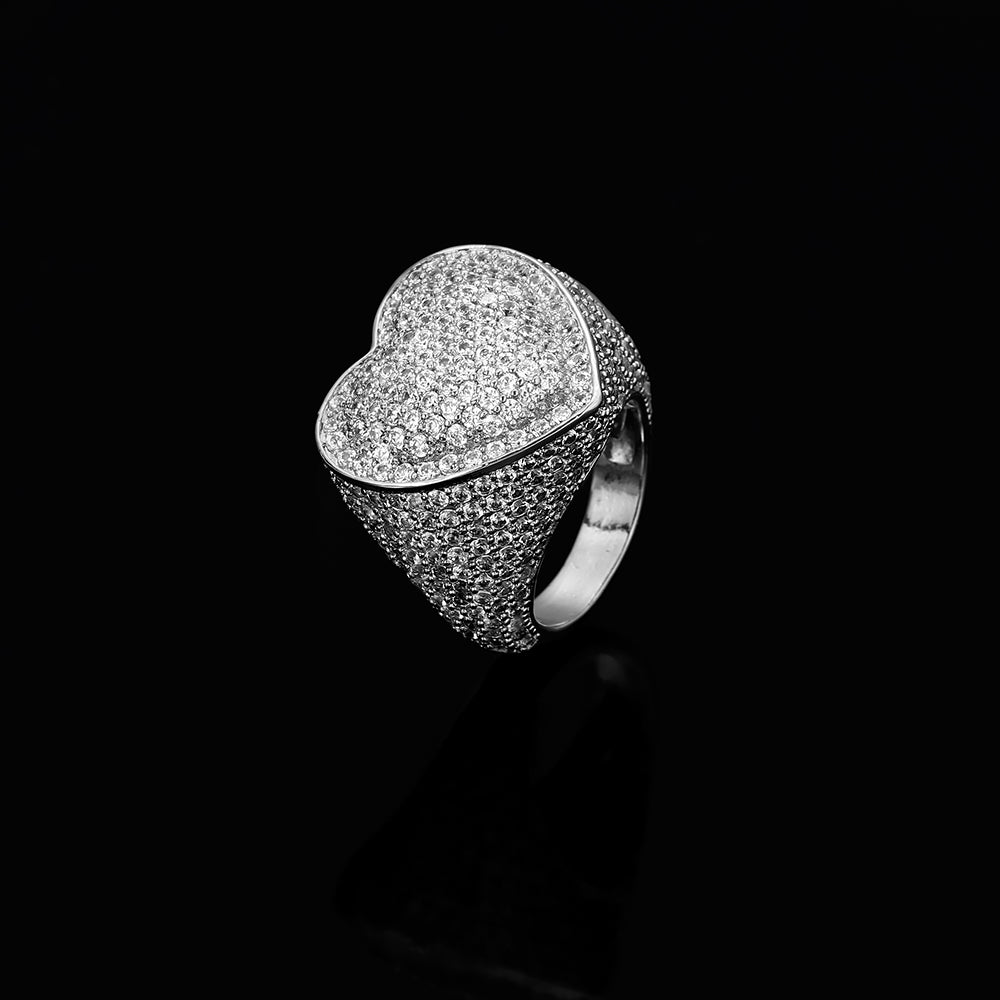 高品質真鍮 A3ランクジルコニア 18Kゴールドメッキ リング ハート アイスドアウト ヒップホップ【NJ00021】