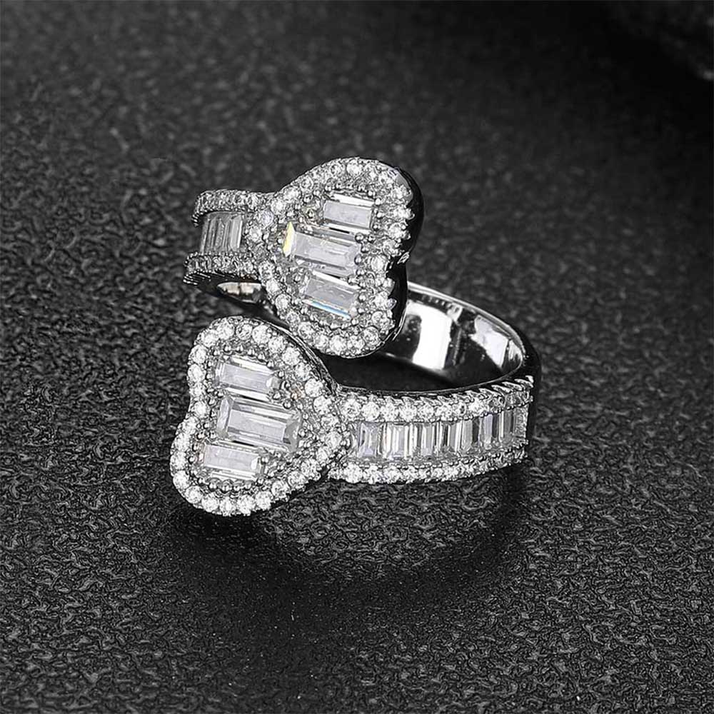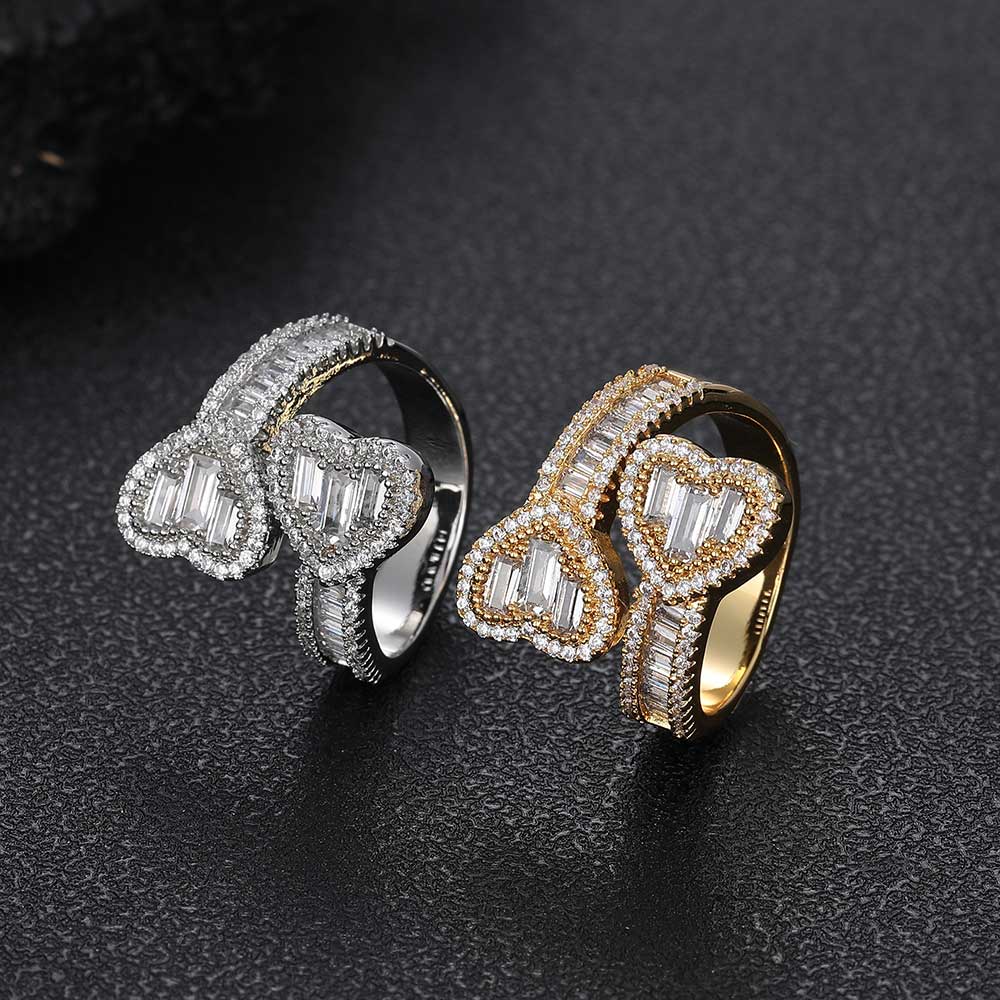 高品質真鍮 A3ランクジルコニア 18Kゴールドメッキ リング ハート アイスドアウト ヒップホップ【NJ00045】