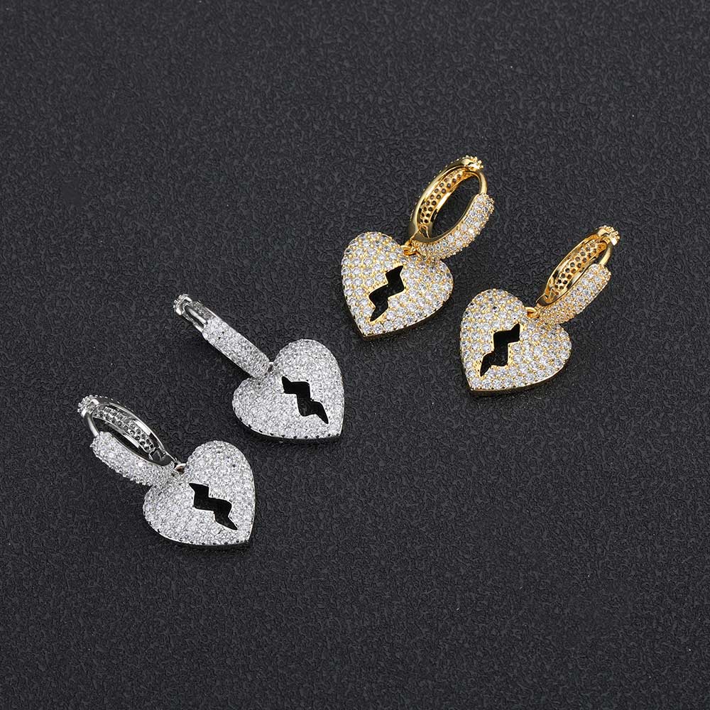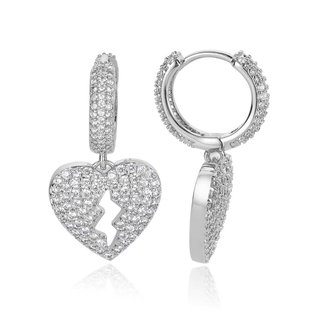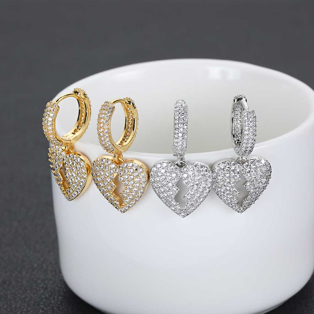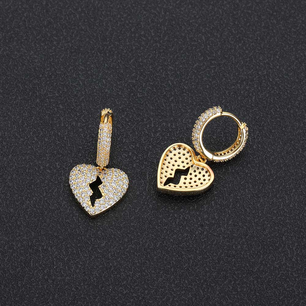 高品質真鍮 A3ランクジルコニア 18Kゴールドメッキ ピアス ハート フープ ジルコニア アイスドアウト ヒップホップ【NJ00049】
