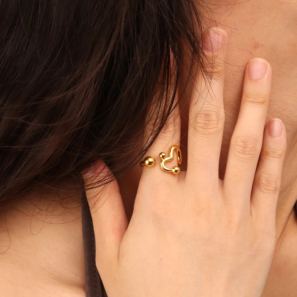 316Lサージカルステンレス 18Kゴールドメッキ リング ハート 【NY00889】