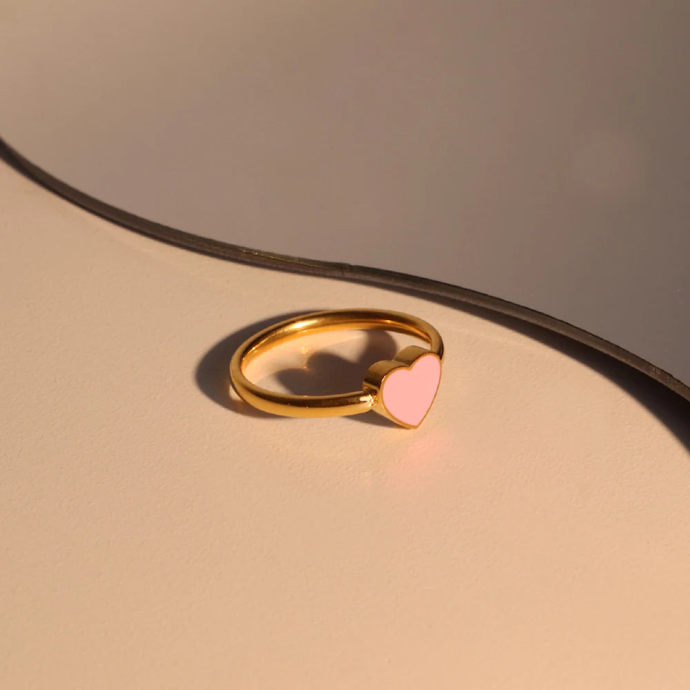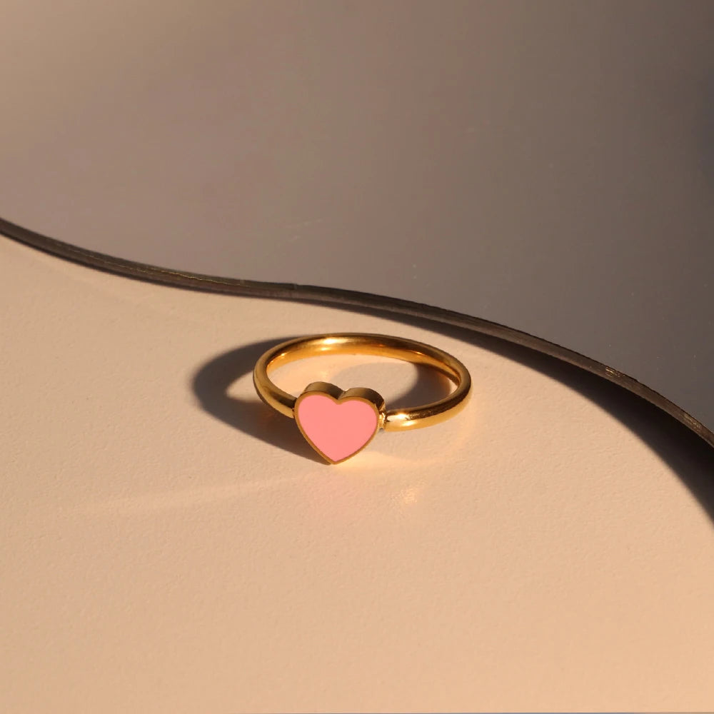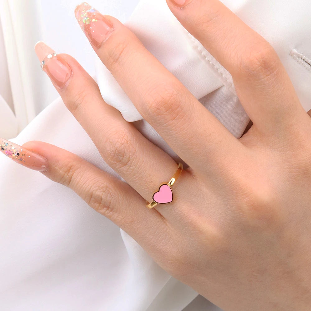 316Lサージカルステンレス 18Kゴールドメッキ リング ハート エナメル【NY00913】
