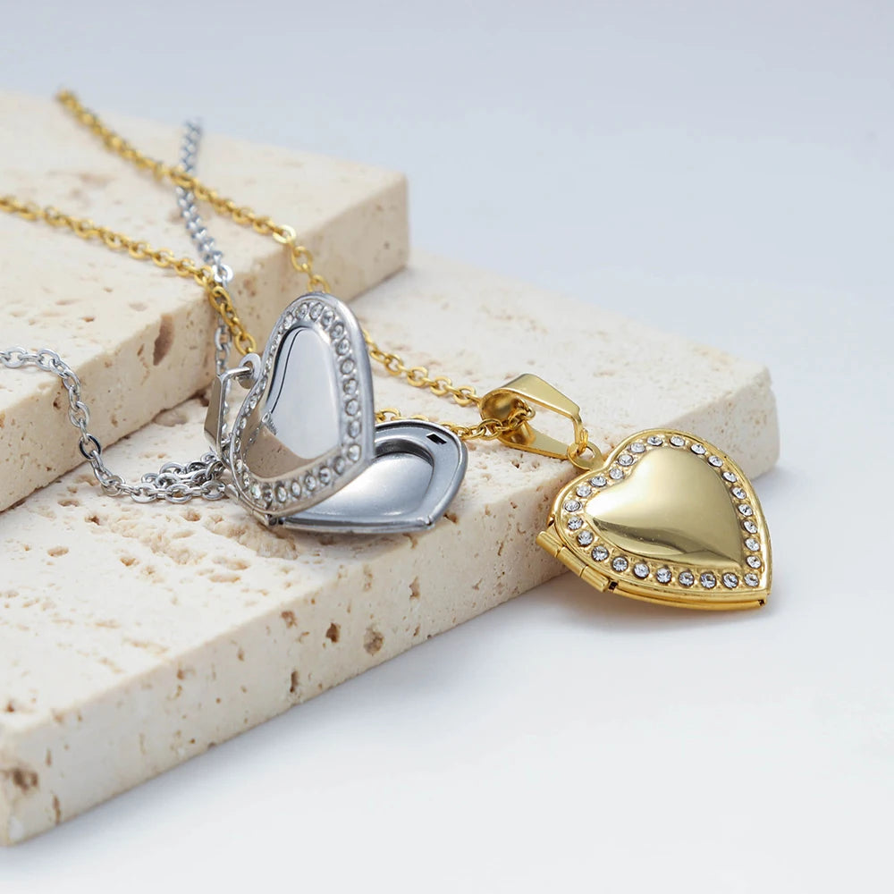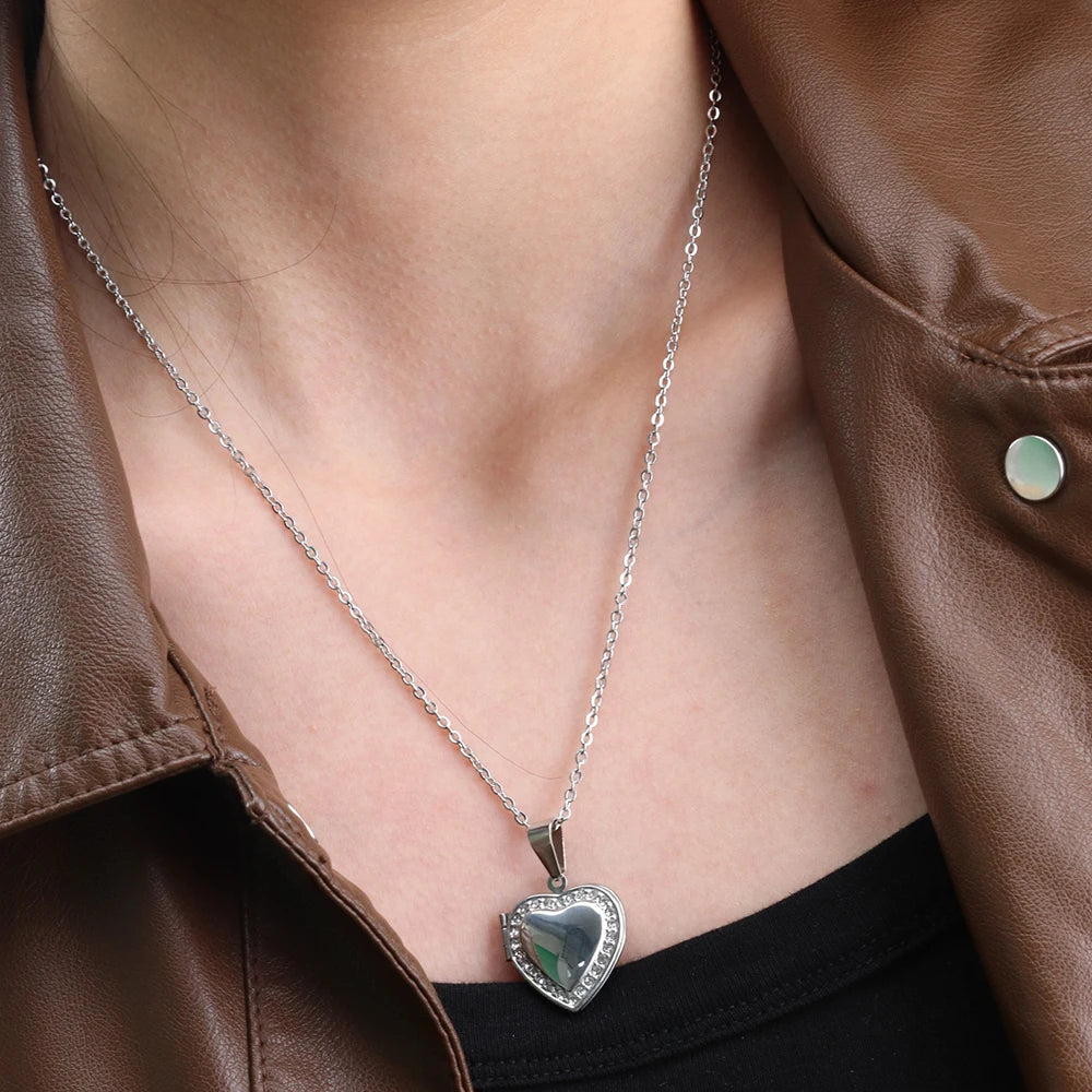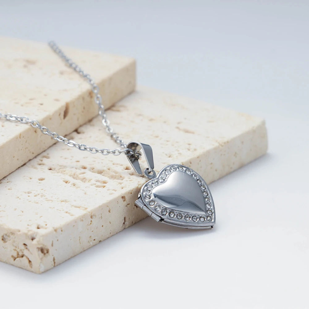 316Lサージカルステンレス ネックレス ハート ジルコニア ロケットペンダント【NY01066】
