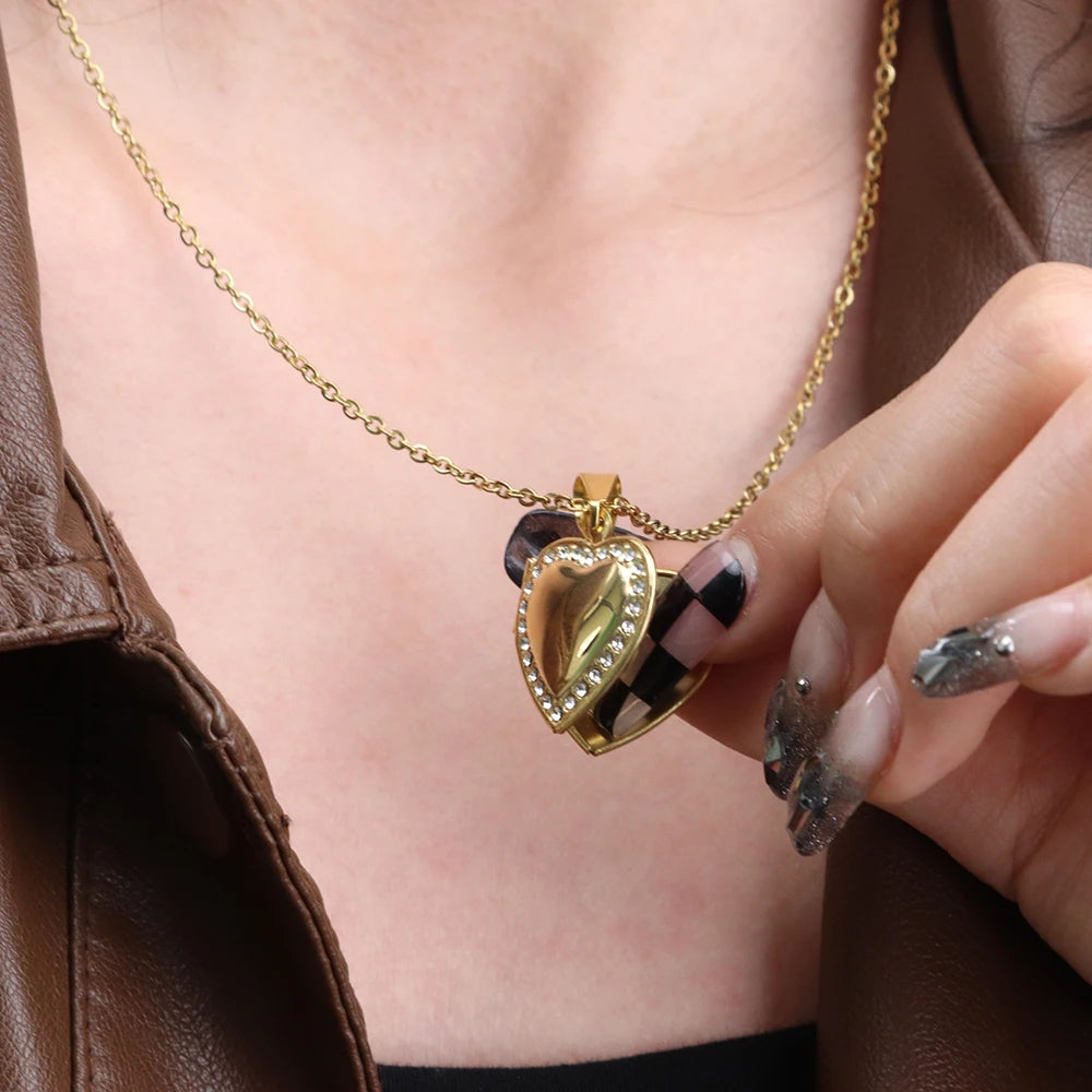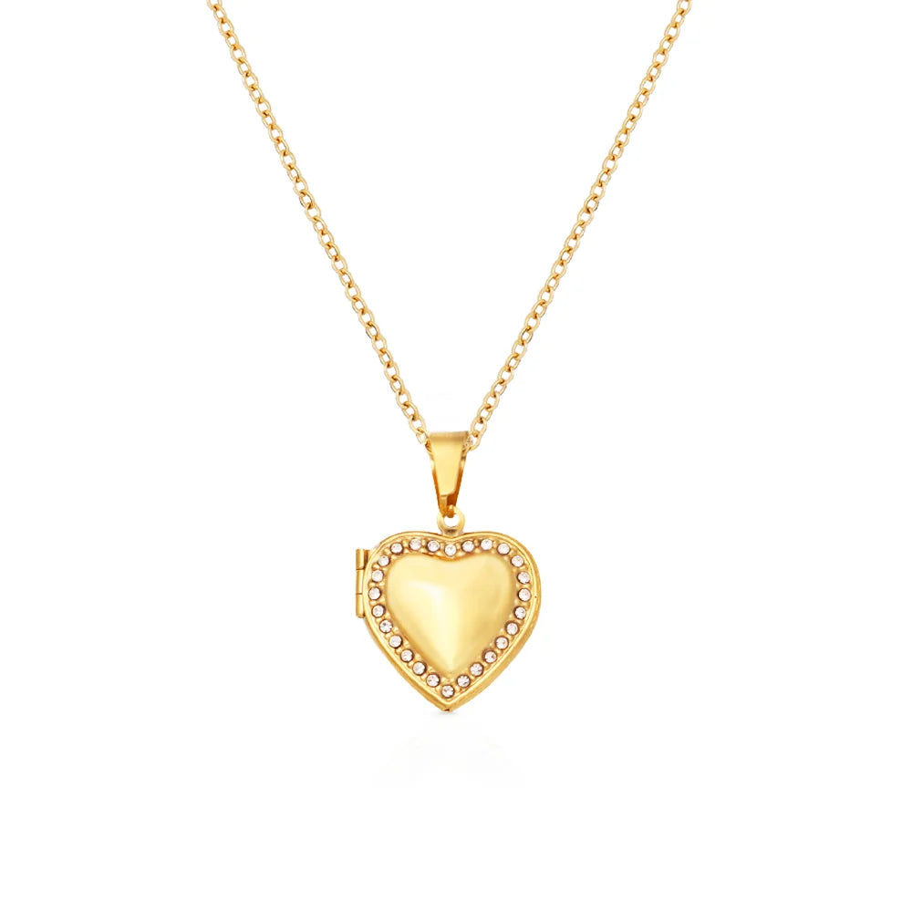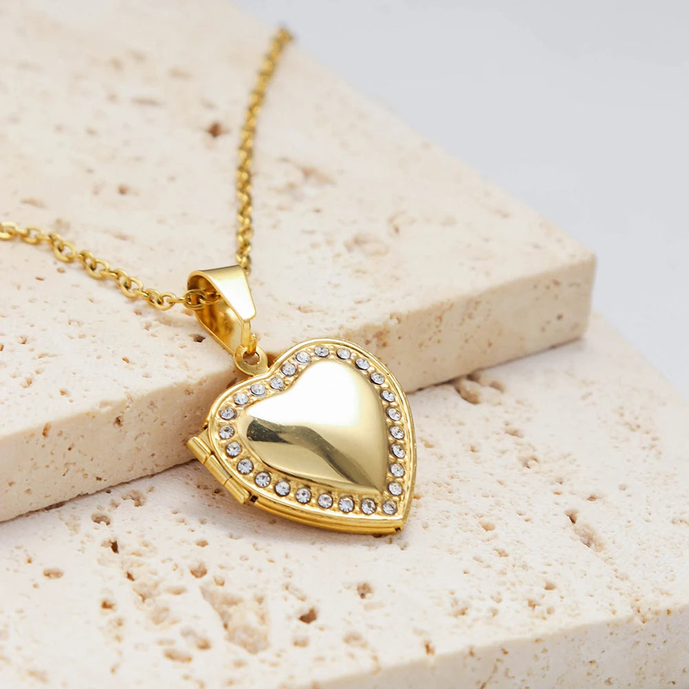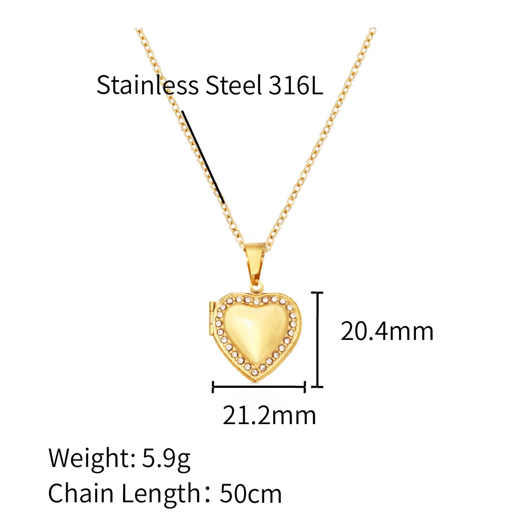 316Lサージカルステンレス ネックレス ハート ジルコニア ロケットペンダント【NY01066】