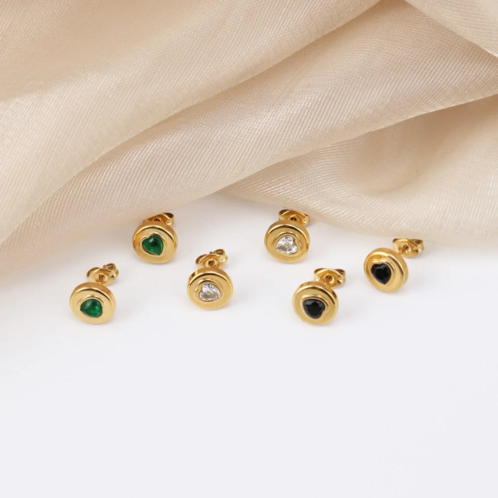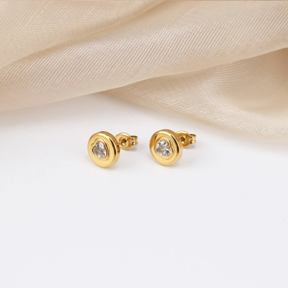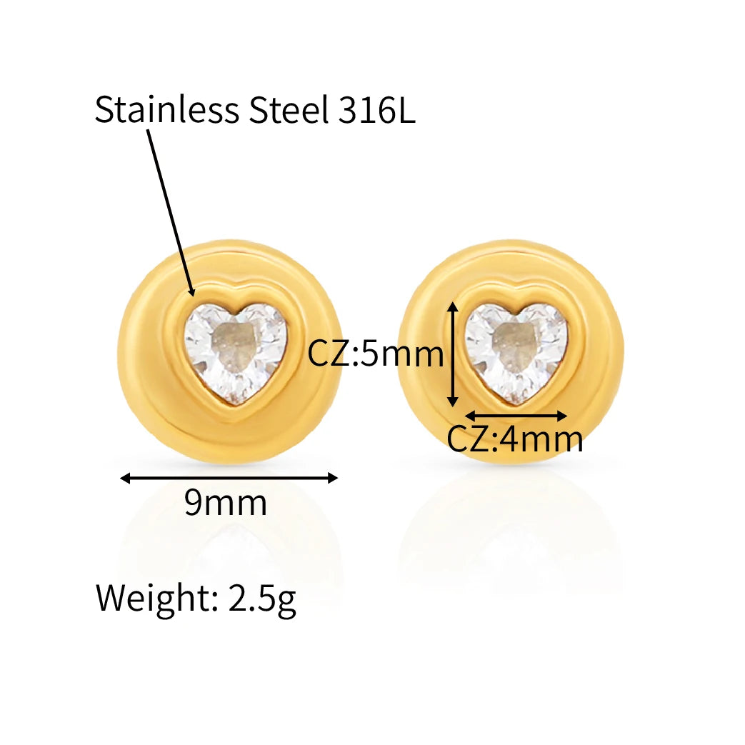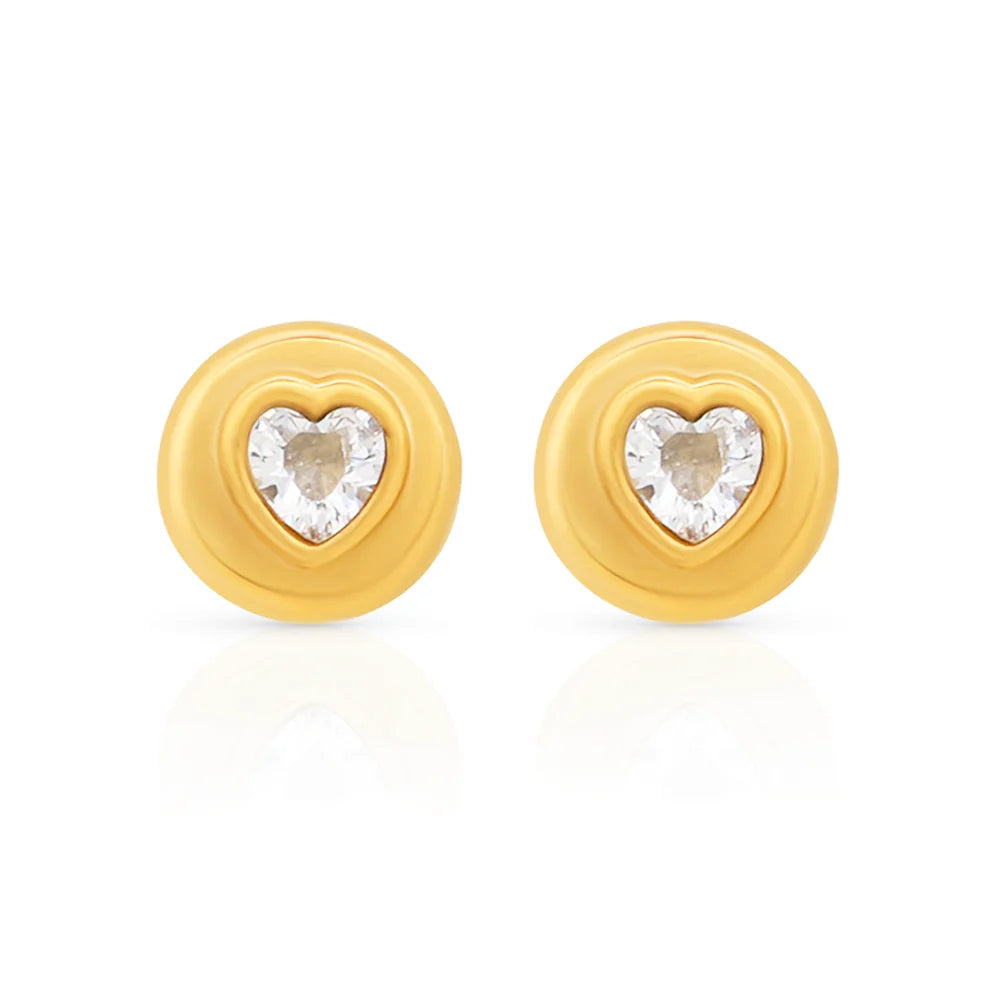 316Lサージカルステンレス 18Kゴールドメッキ ピアス ハート ラウンド ジルコニア【NY01278】