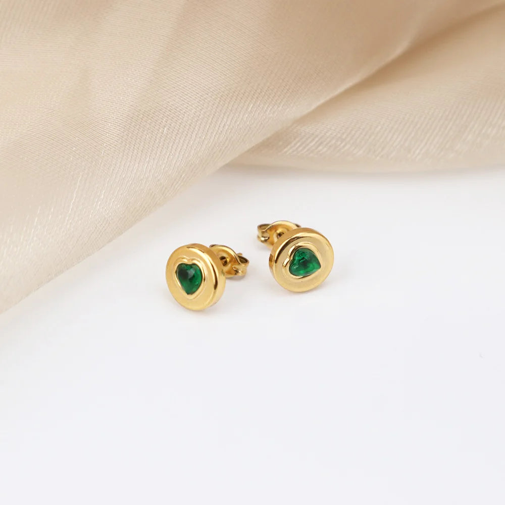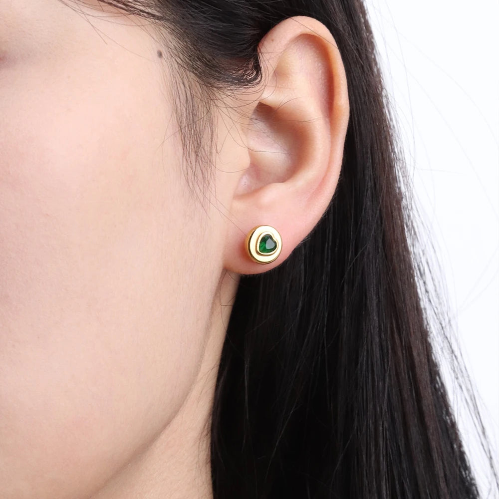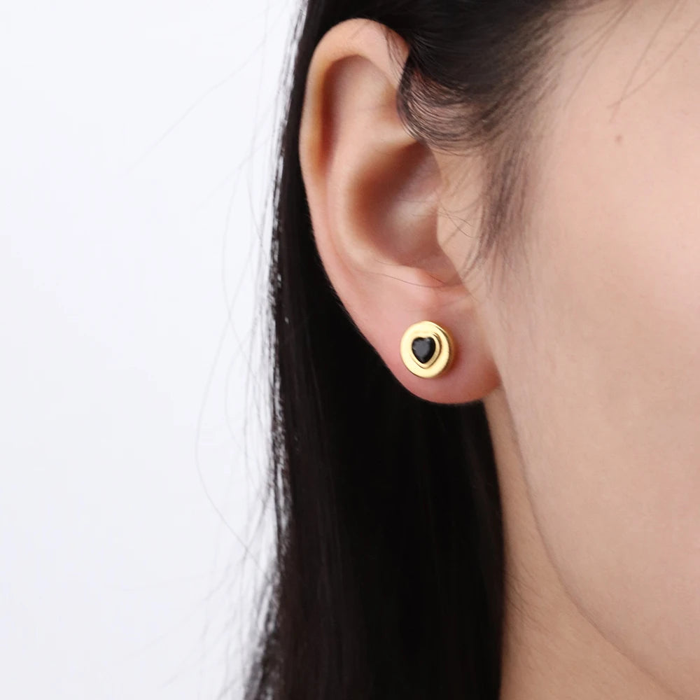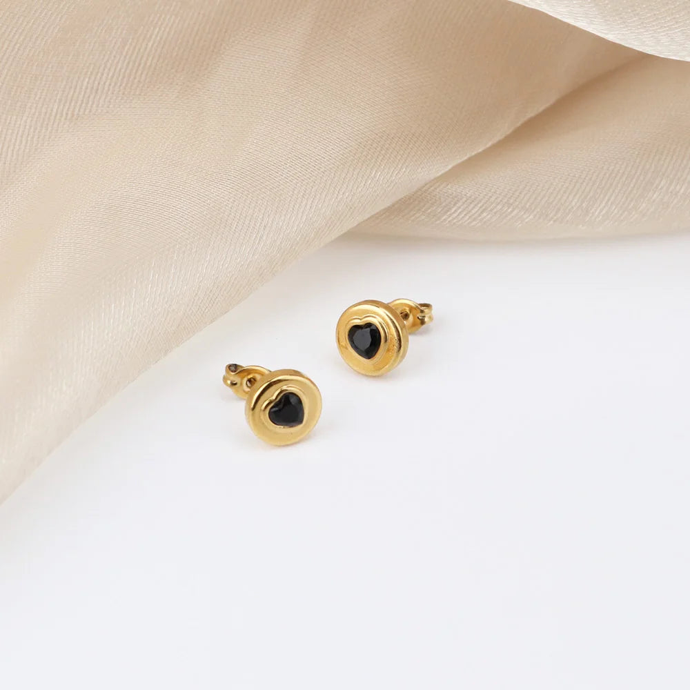 316Lサージカルステンレス 18Kゴールドメッキ ピアス ハート ラウンド ジルコニア【NY01278】