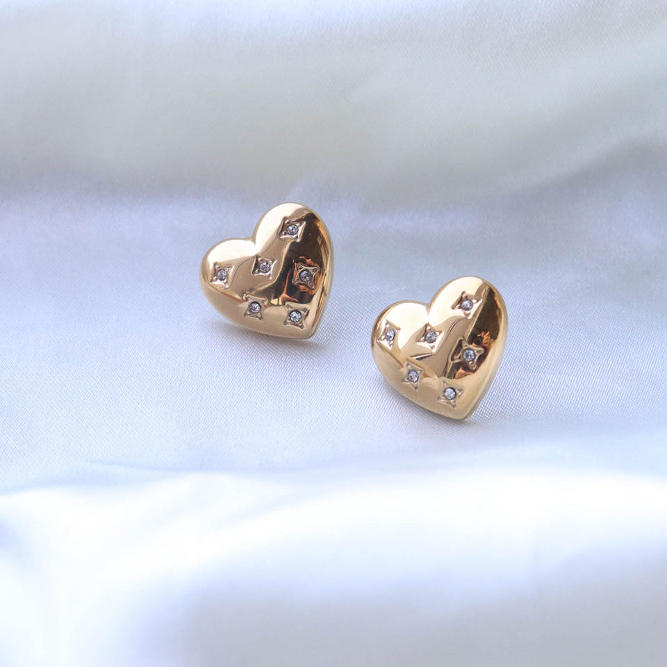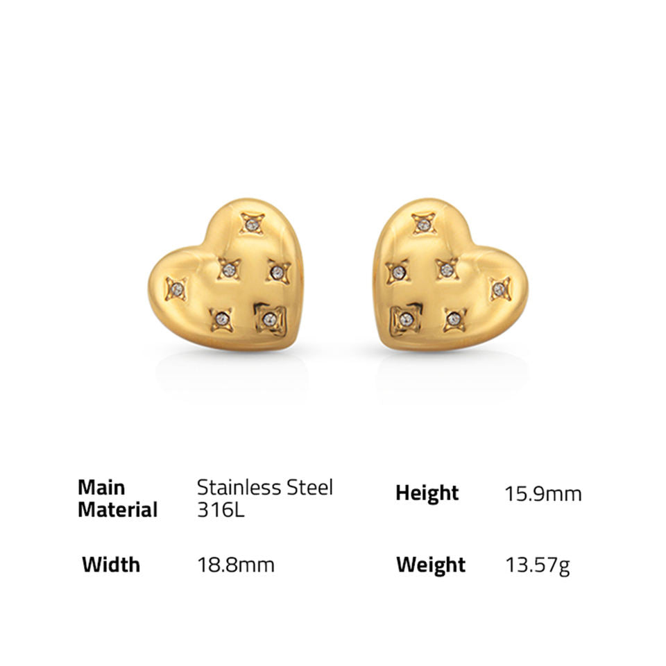 316Lサージカルステンレス ピアス ハート ジルコニア【NY01292】