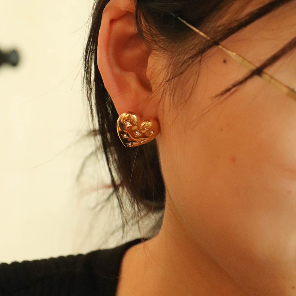 - ピアスのポスト部分はメッキ加工の特性上、キャッチがきつく感じられる場合や、スムーズに取り外せないことがありますが、これは不良品ではありませんのでご了承ください。