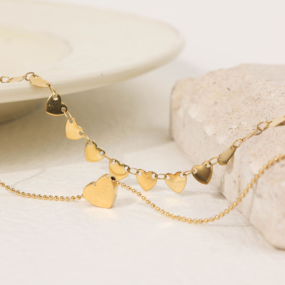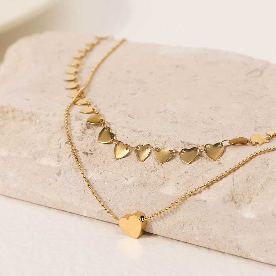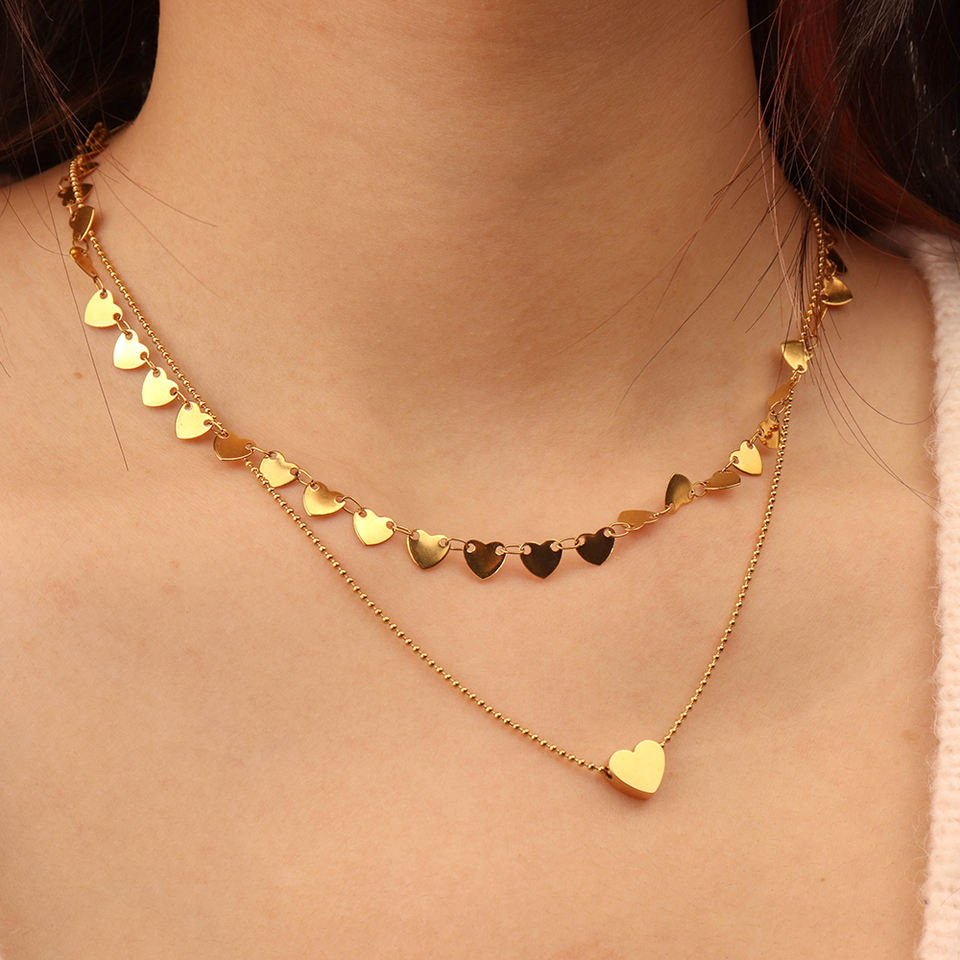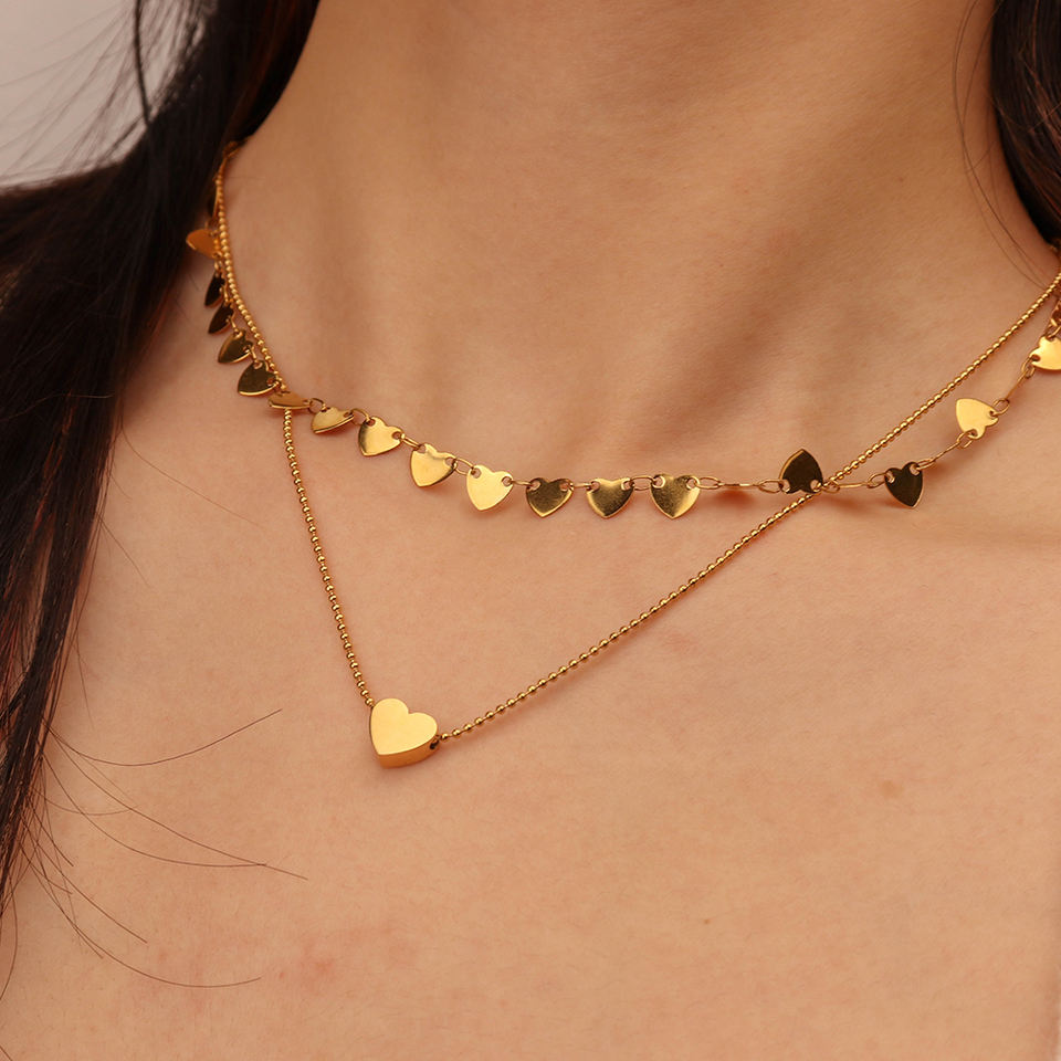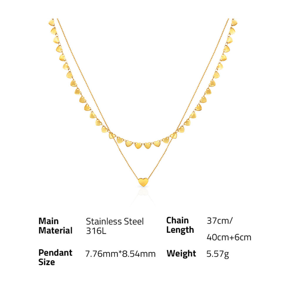 316Lサージカルステンレス 18Kゴールドメッキ ネックレス ハート 2連【NY01330】