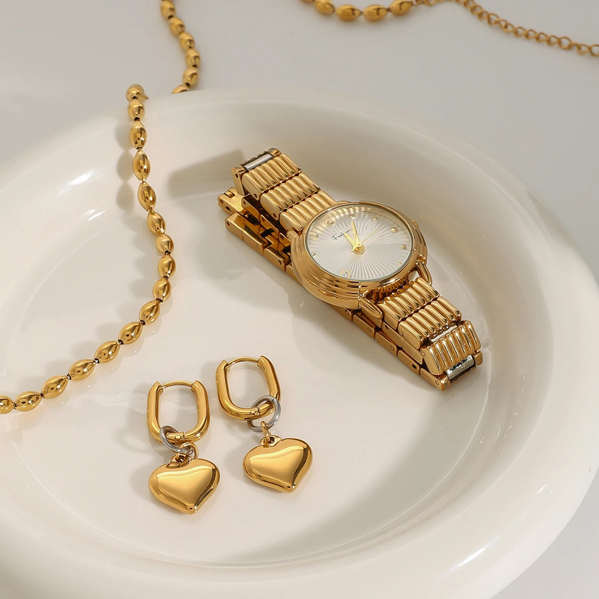 ステンレス304 ニッケルフリー 水に濡れても錆びにくい 18Kゴールドメッキ ピアス ハート 【YJ00681】
