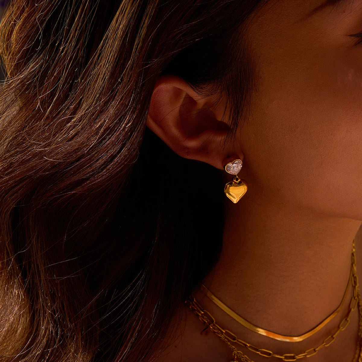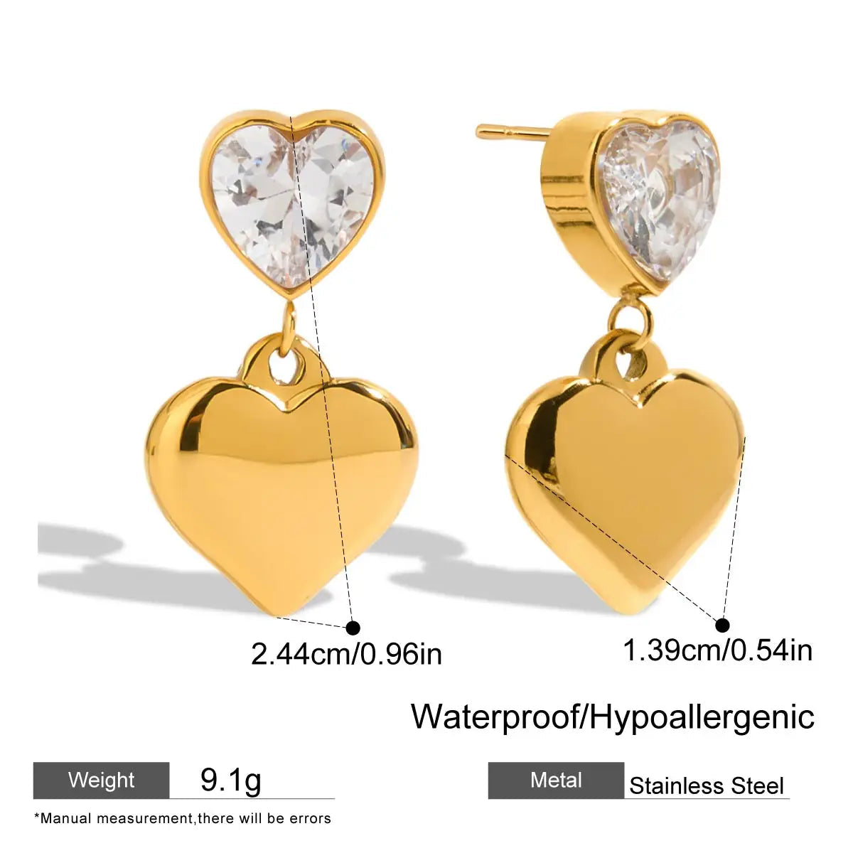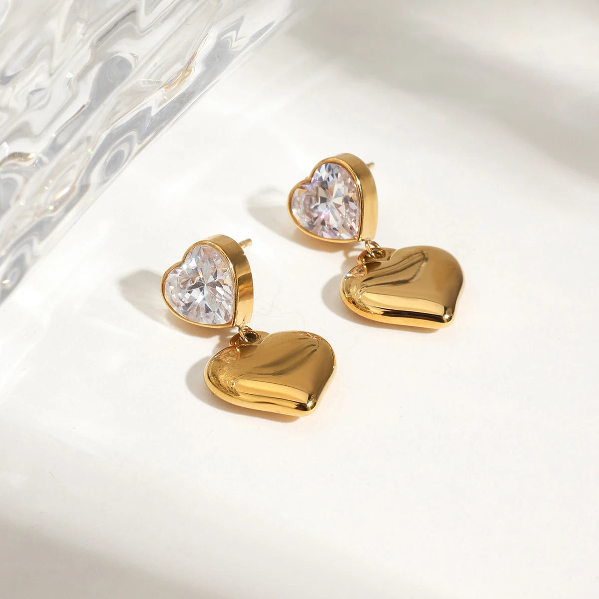 ステンレス304 ニッケルフリー 水に濡れても錆びにくい 18Kゴールドメッキ ピアス ハート ジルコニア 【YJ00880】