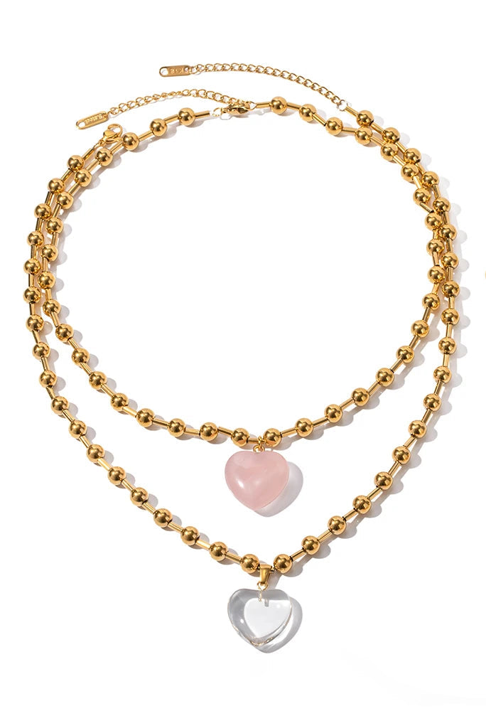 ステンレス304 低ニッケル 水に濡れても錆びにくい 18Kゴールドメッキ ネックレス ハート クリスタル【YJ01082】