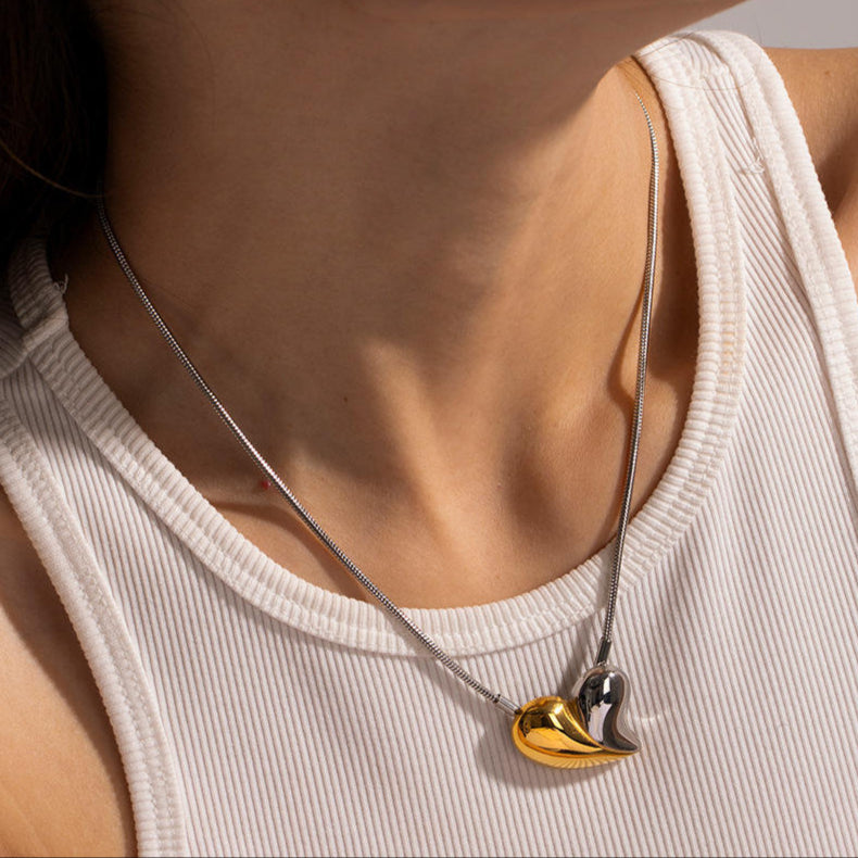 ステンレス304 低ニッケル 水に濡れても錆びにくい 18Kゴールドメッキ ネックレス ハート【YJ01189】