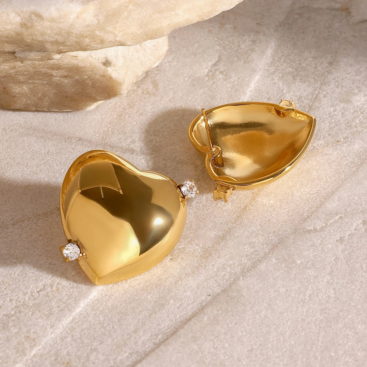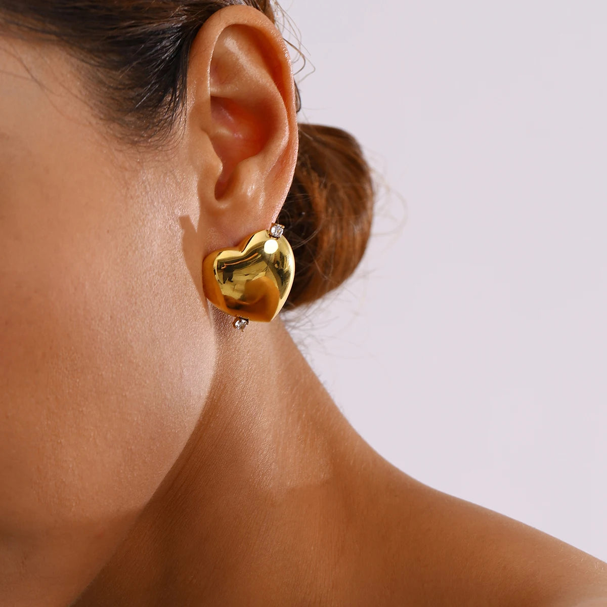 ステンレス304 低ニッケル 水に濡れても錆びにくい 18Kゴールドメッキ ピアス ハート 【YJ01434】