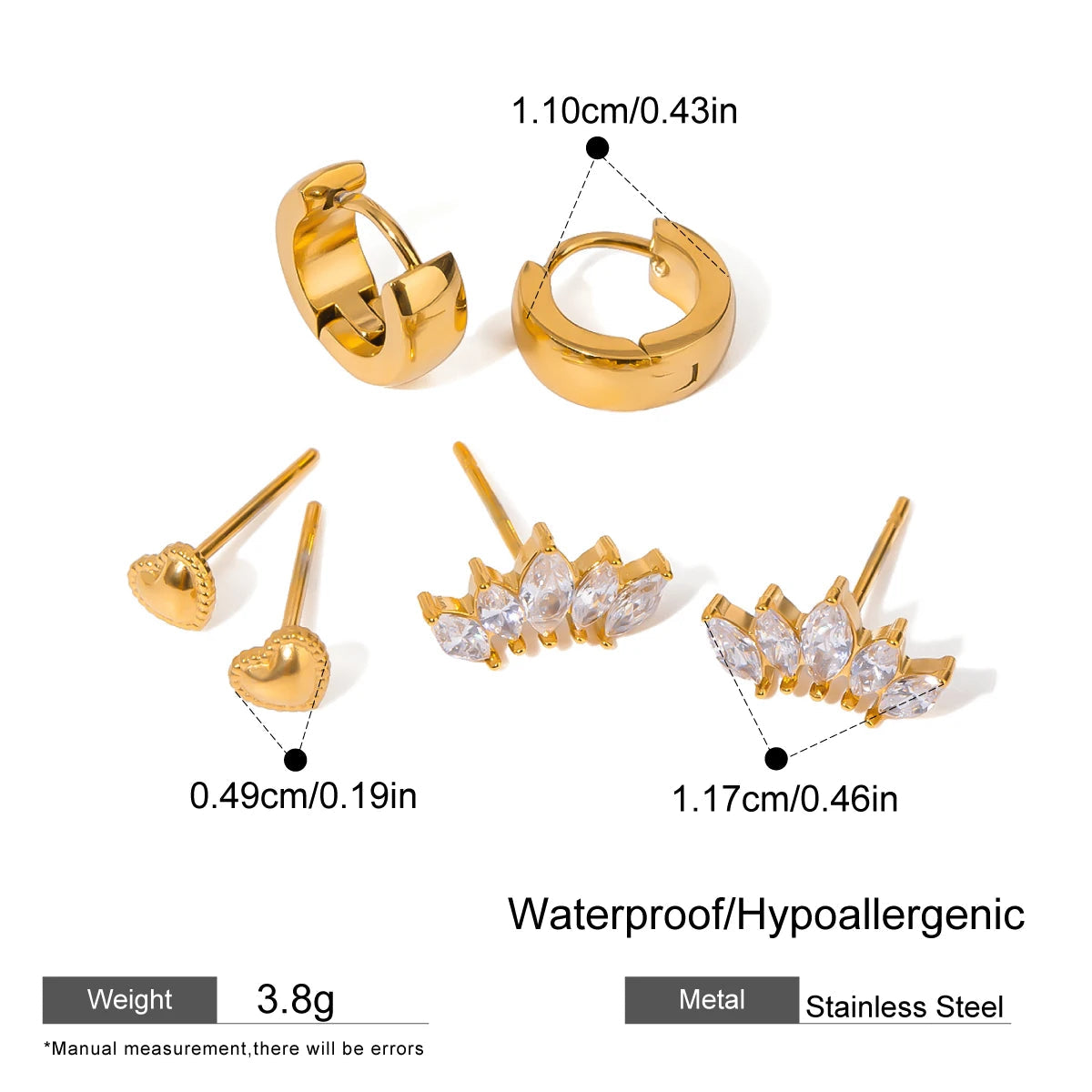 ステンレス304 低ニッケル 水に濡れても錆びにくい 18Kゴールドメッキ ピアス ハート ジルコニア 3点セット【YJ01446】