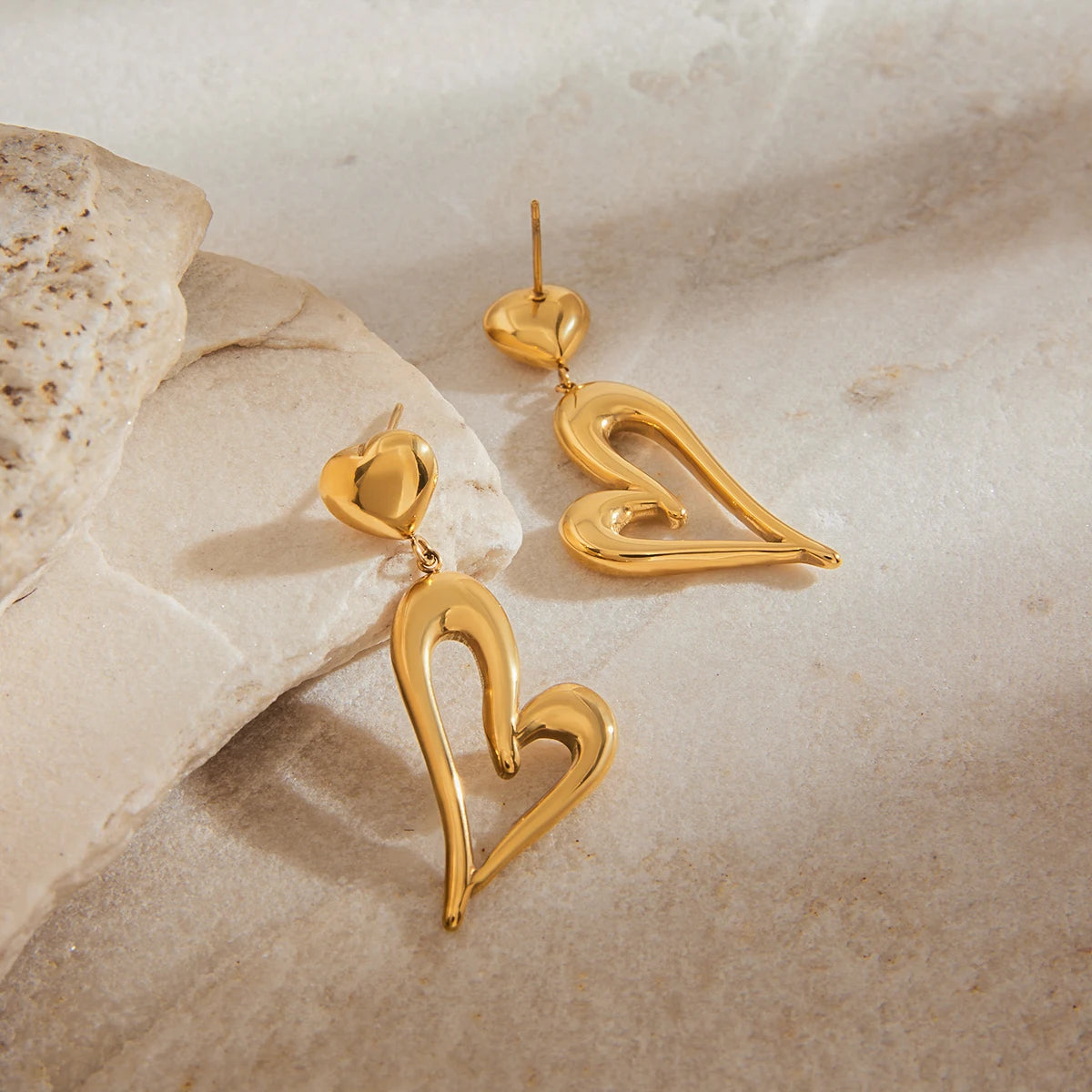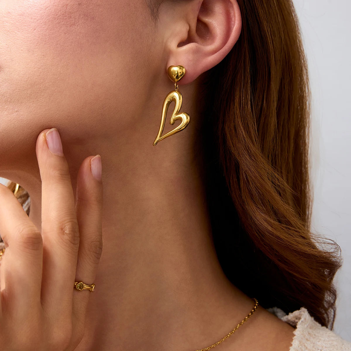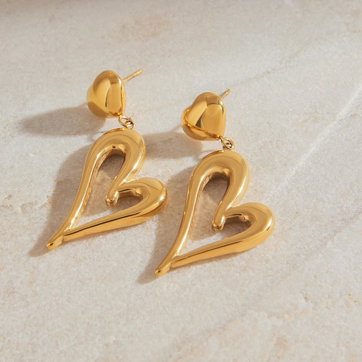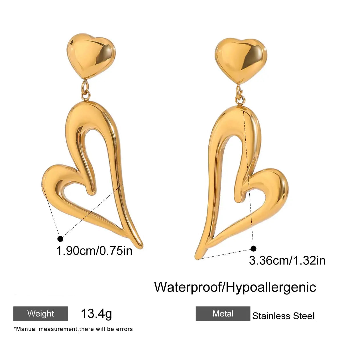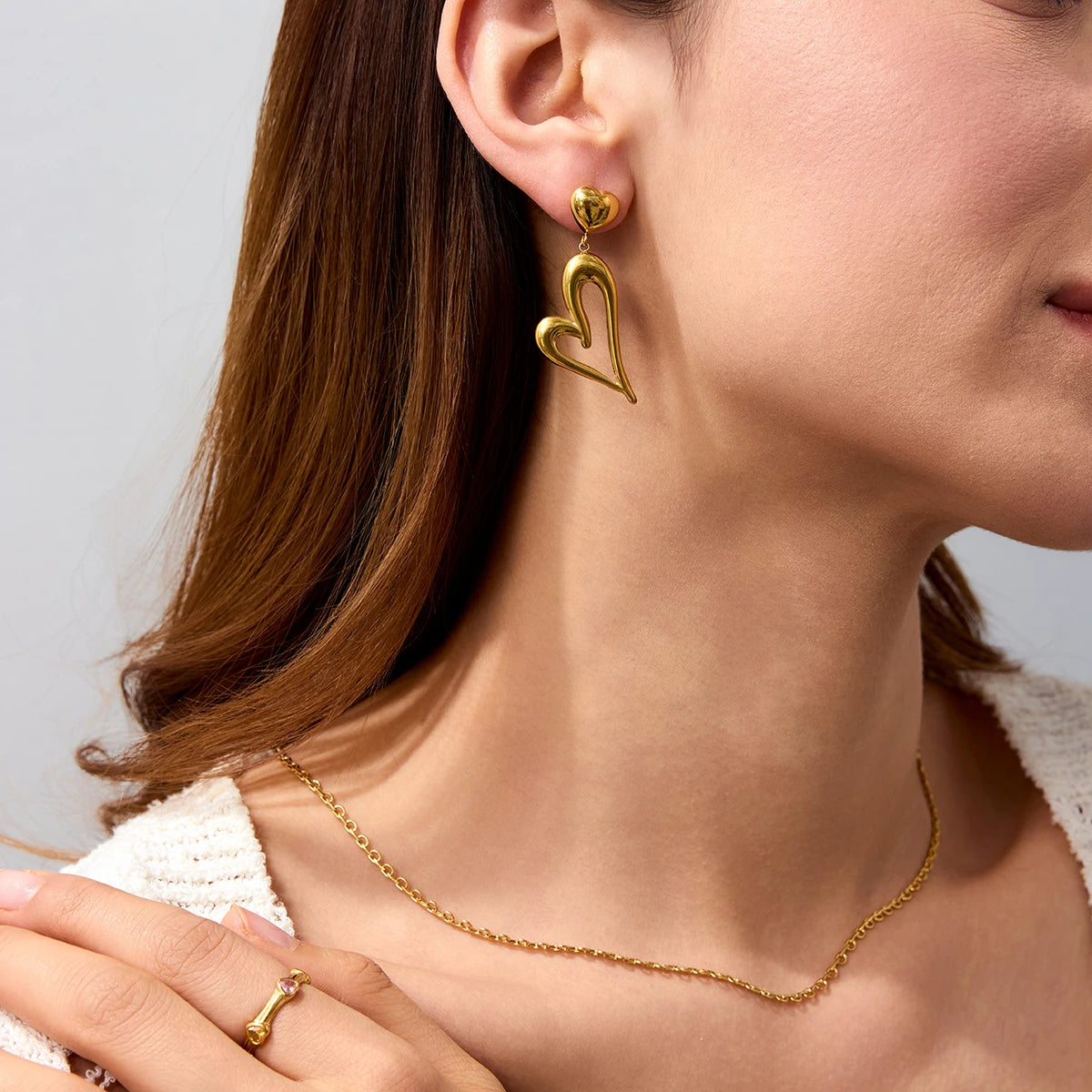 ステンレス304 低ニッケル 水に濡れても錆びにくい 18Kゴールドメッキ ピアス ハート 【YJ01539】