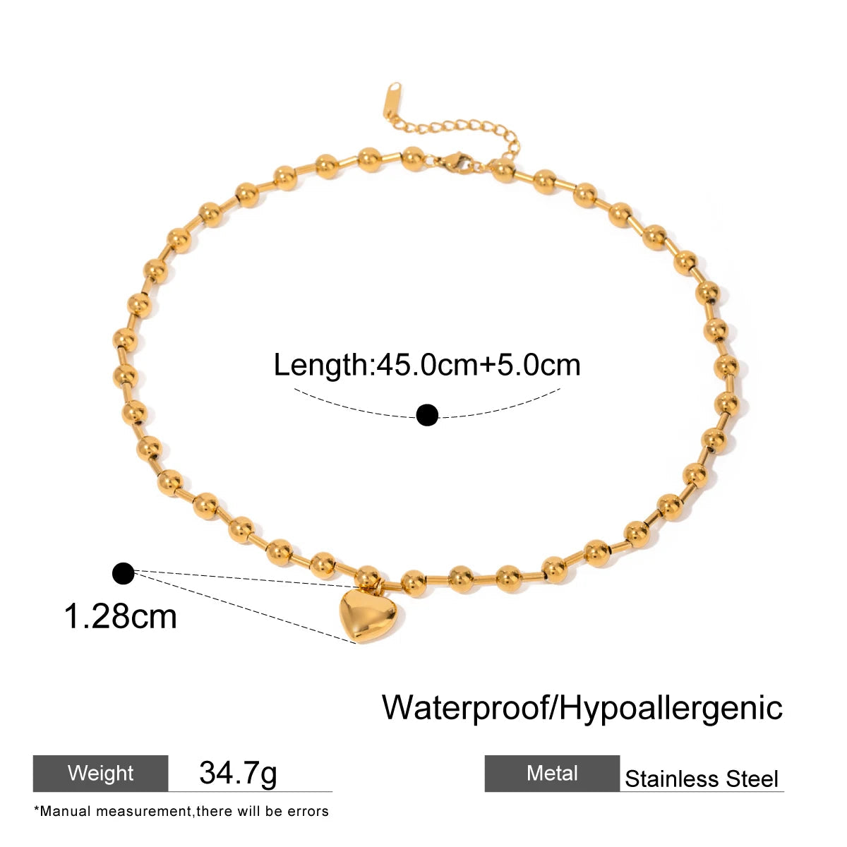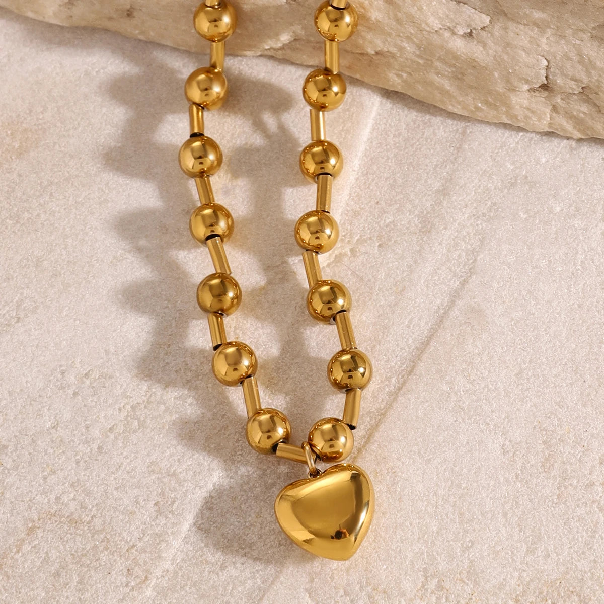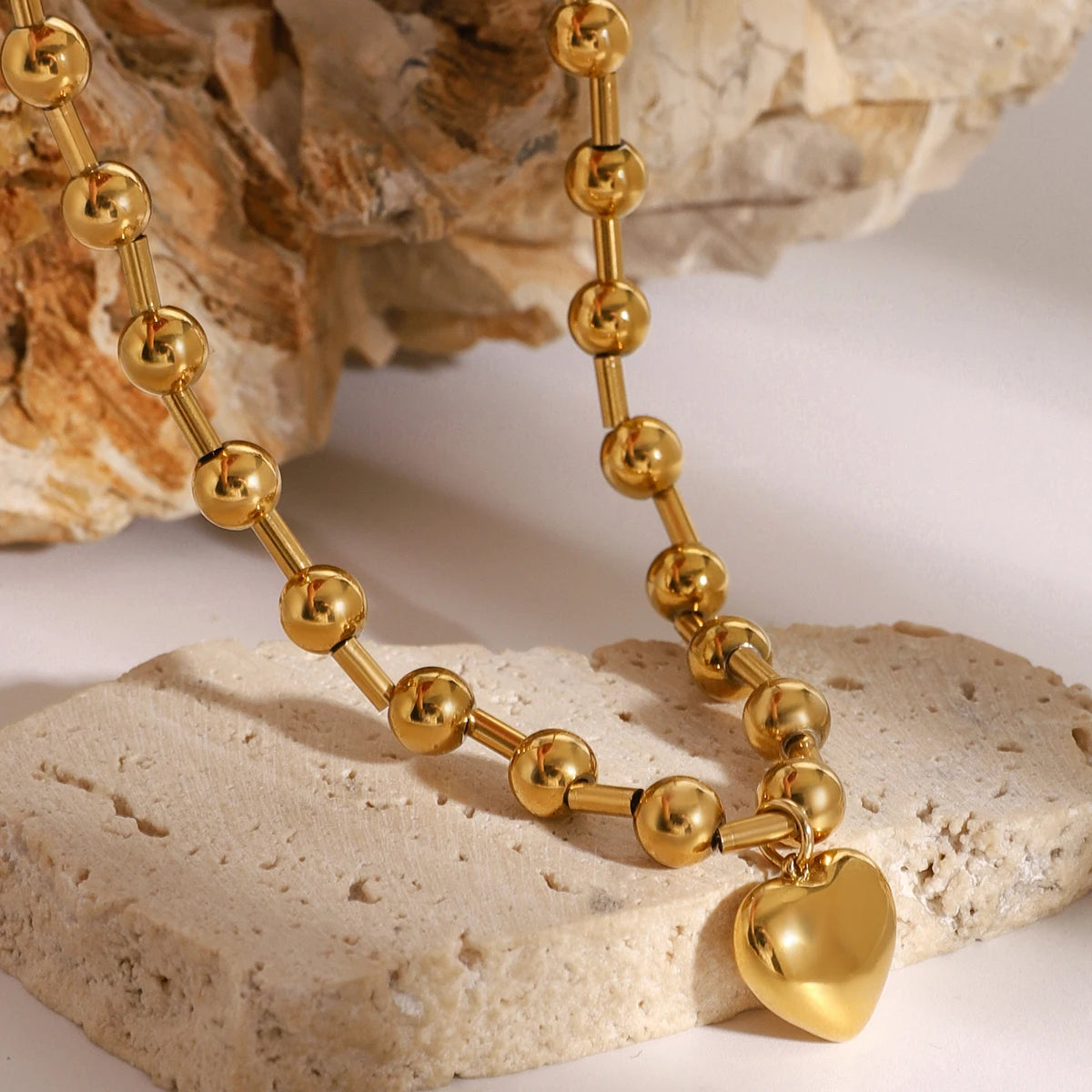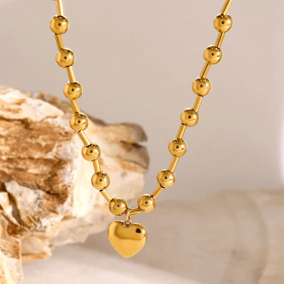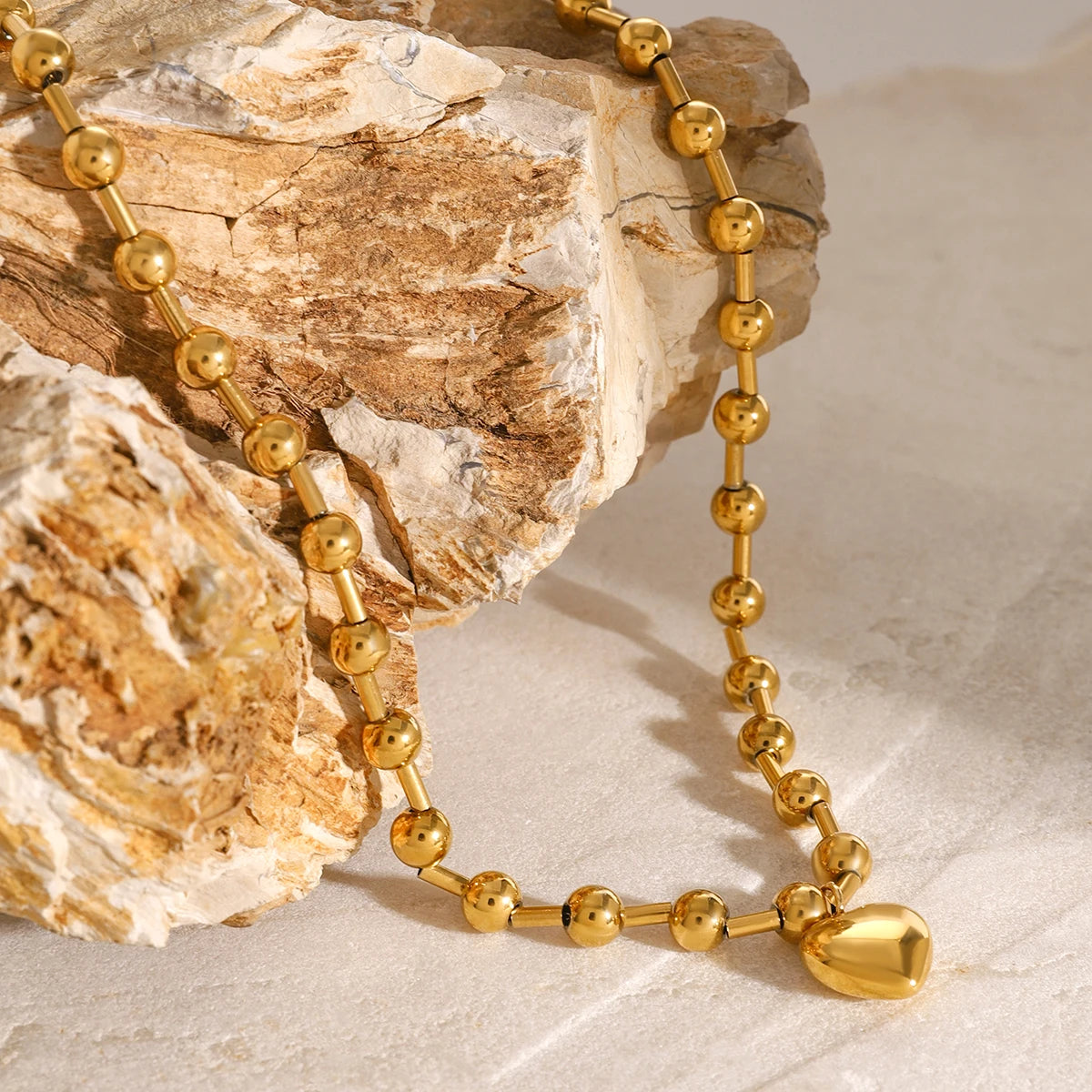 ステンレス304 低ニッケル 水に濡れても錆びにくい 18Kゴールドメッキ ネックレス チェーン ハート 【YJ01581】