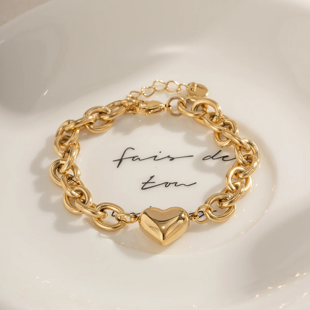 ステンレス304 低ニッケル 水に濡れても錆びにくい 18Kゴールドメッキ ブレスレット チェーン ハート 【YJ01779】