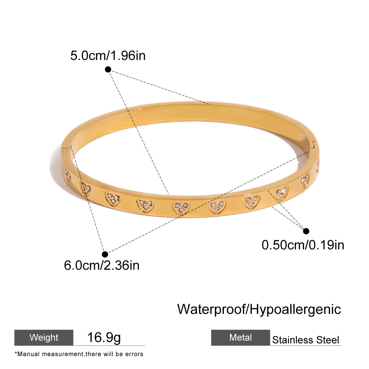 ステンレス304 低ニッケル 水に濡れても錆びにくい 18Kゴールドメッキ ブレスレット ハート ジルコニア 【YJ01806】