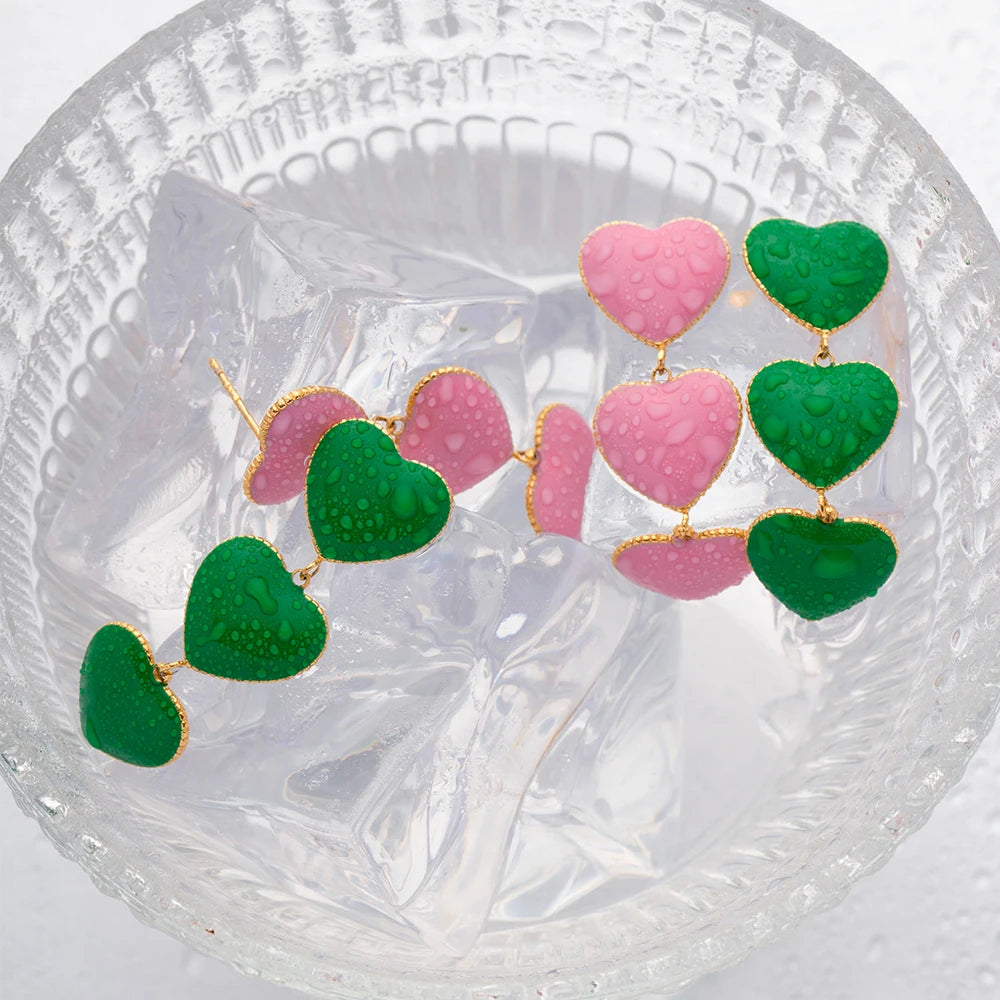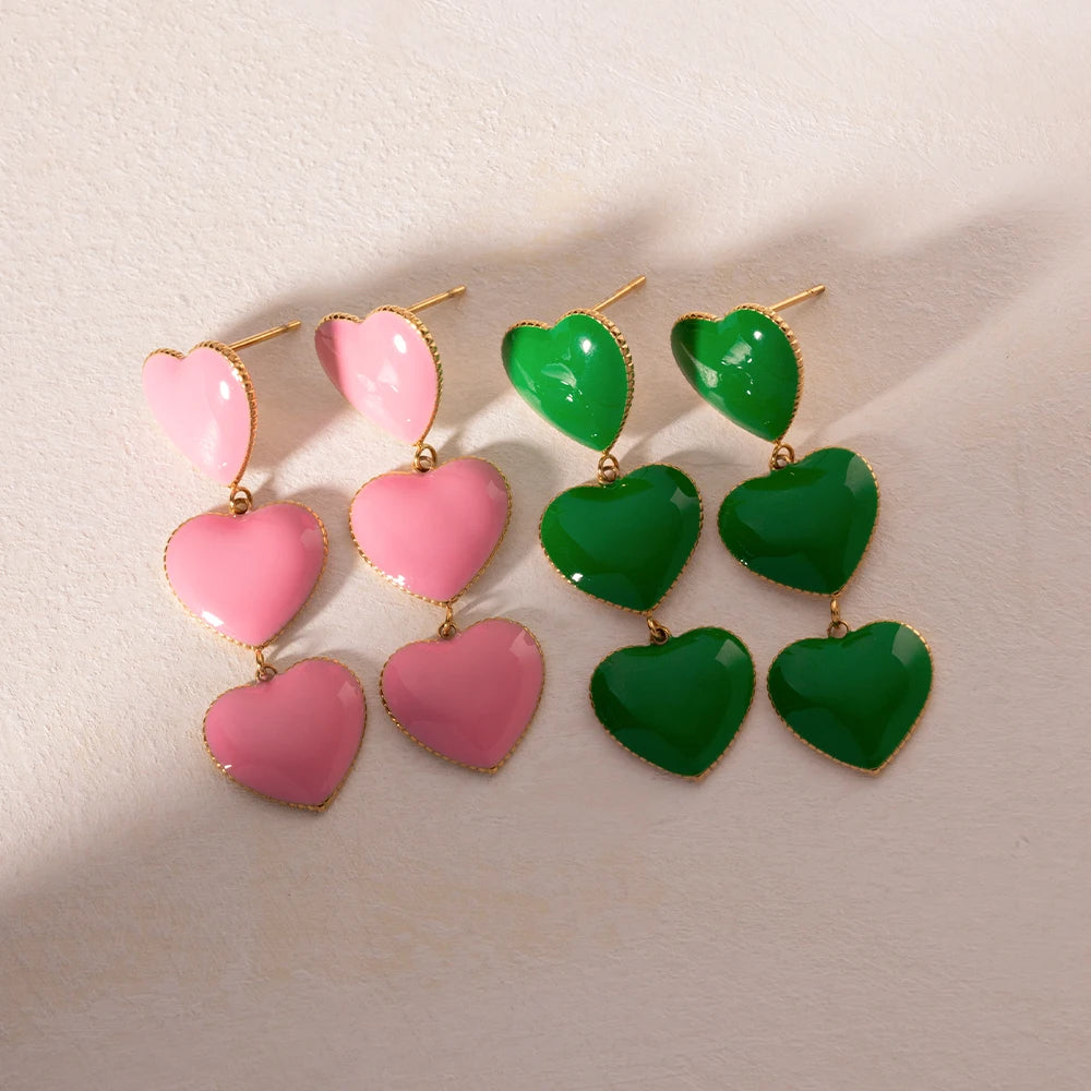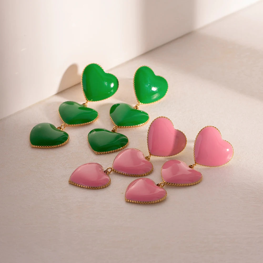 ステンレス304 低ニッケル 水に濡れても錆びにくい 18Kゴールドメッキ ピアス ハート エナメル【YJ02082】