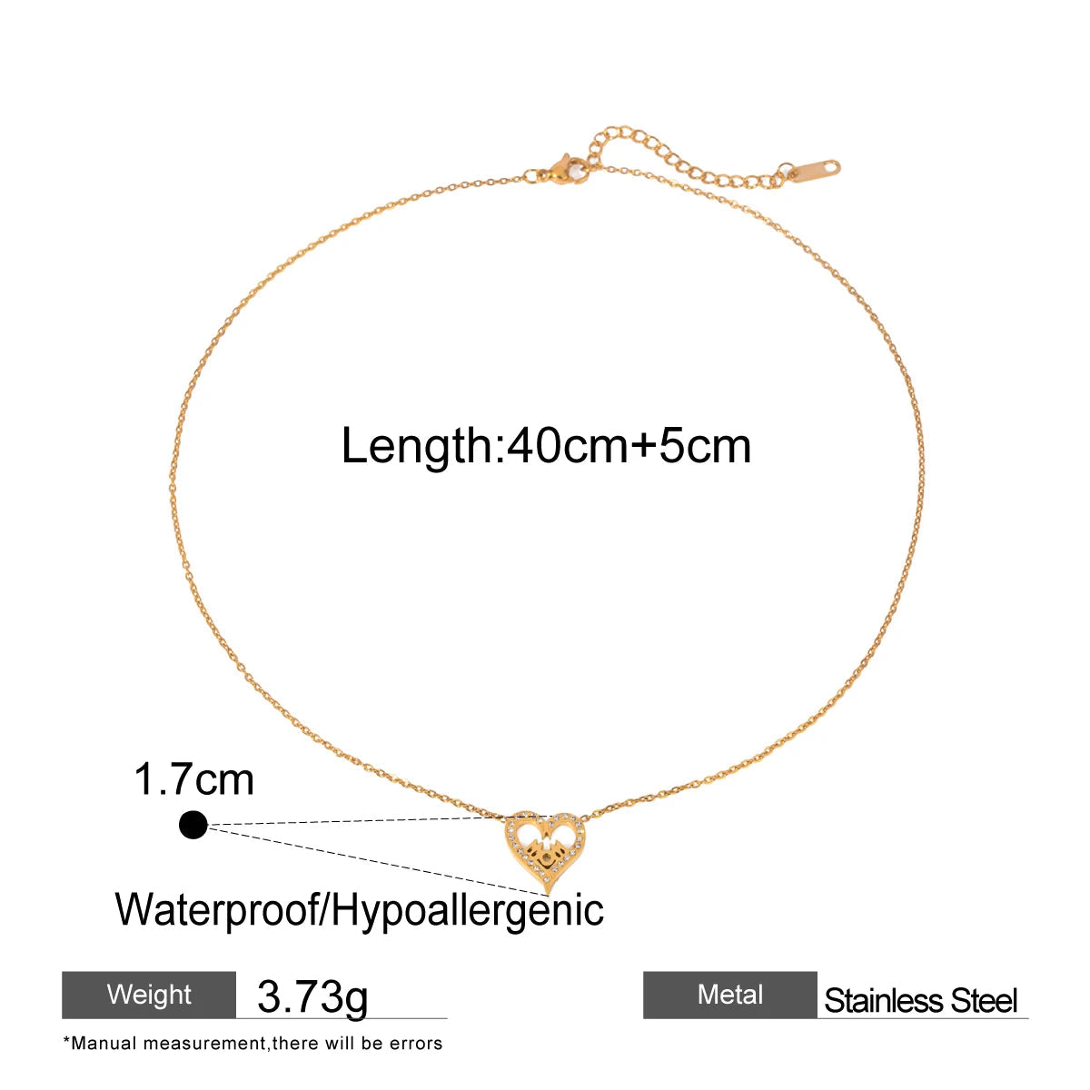 ステンレス304 低ニッケル 水に濡れても錆びにくい 18Kゴールドメッキ ネックレス ハート ジルコニア MOM 【YJ02149】