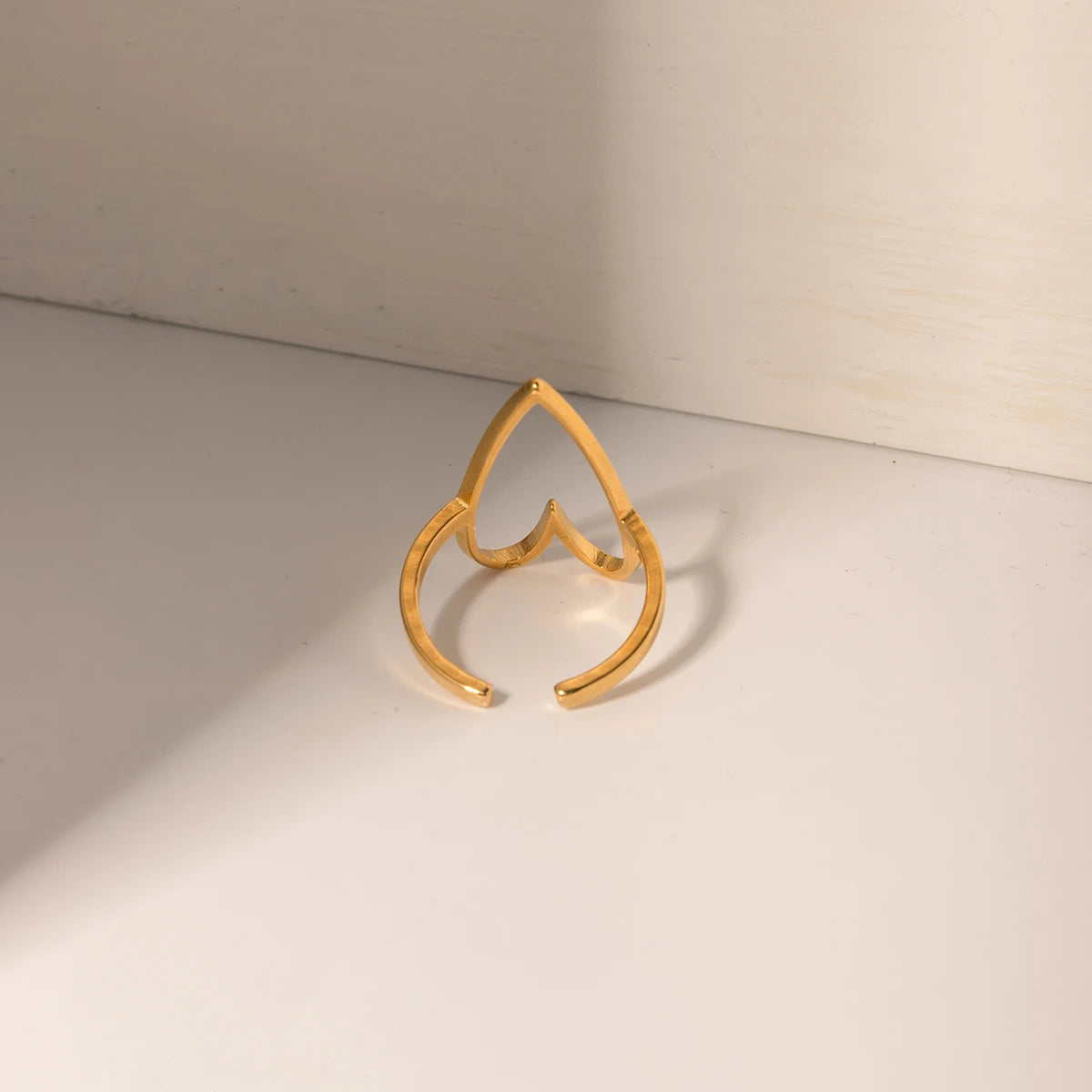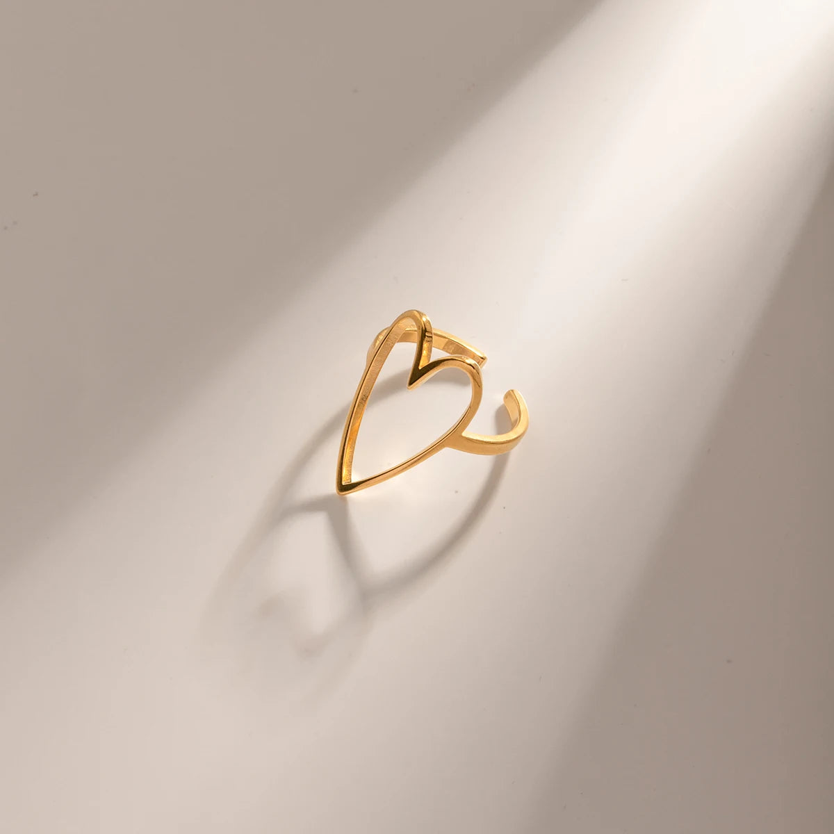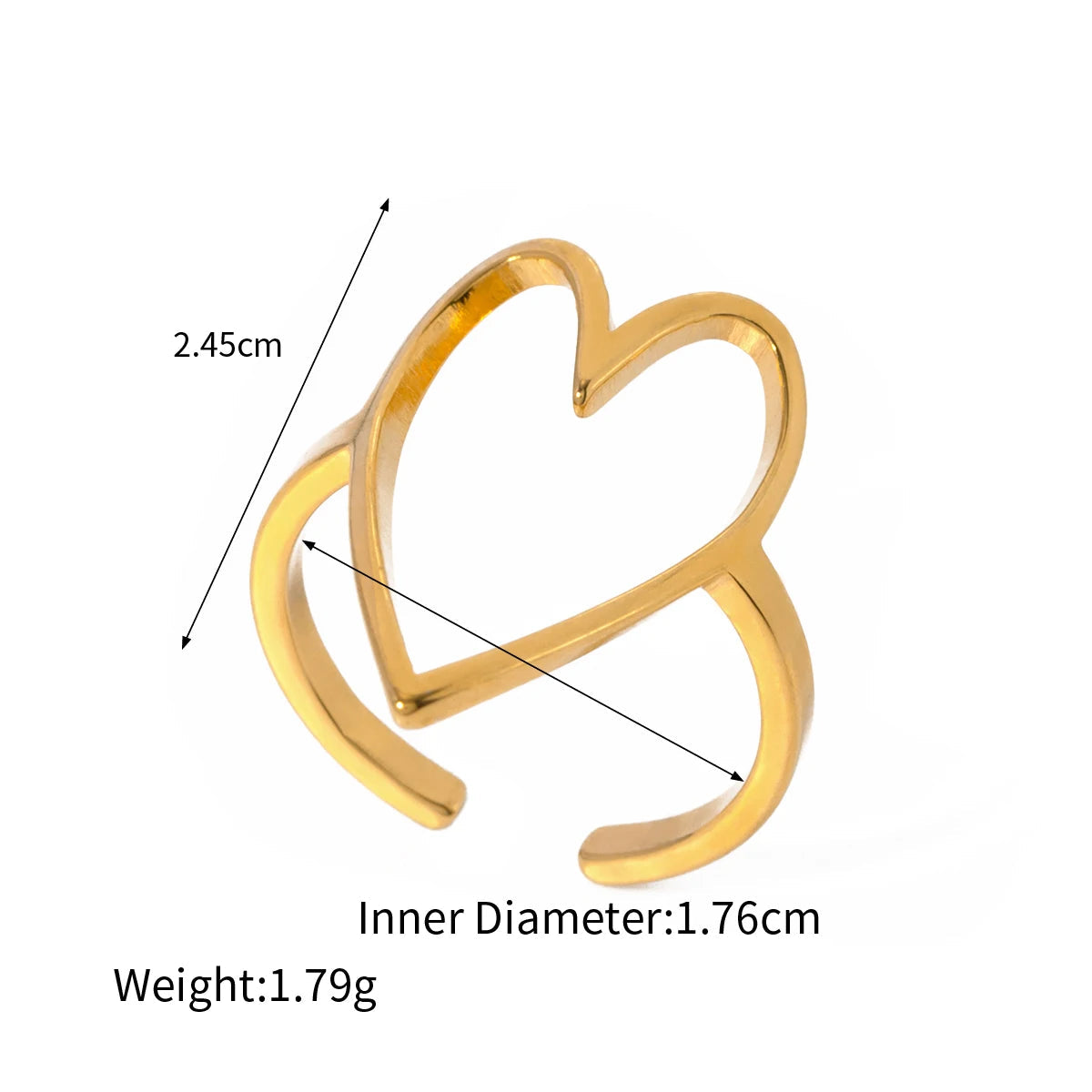 ステンレス304 低ニッケル 水に濡れても錆びにくい 18Kゴールドメッキ リング ハート 【YJ02186】
