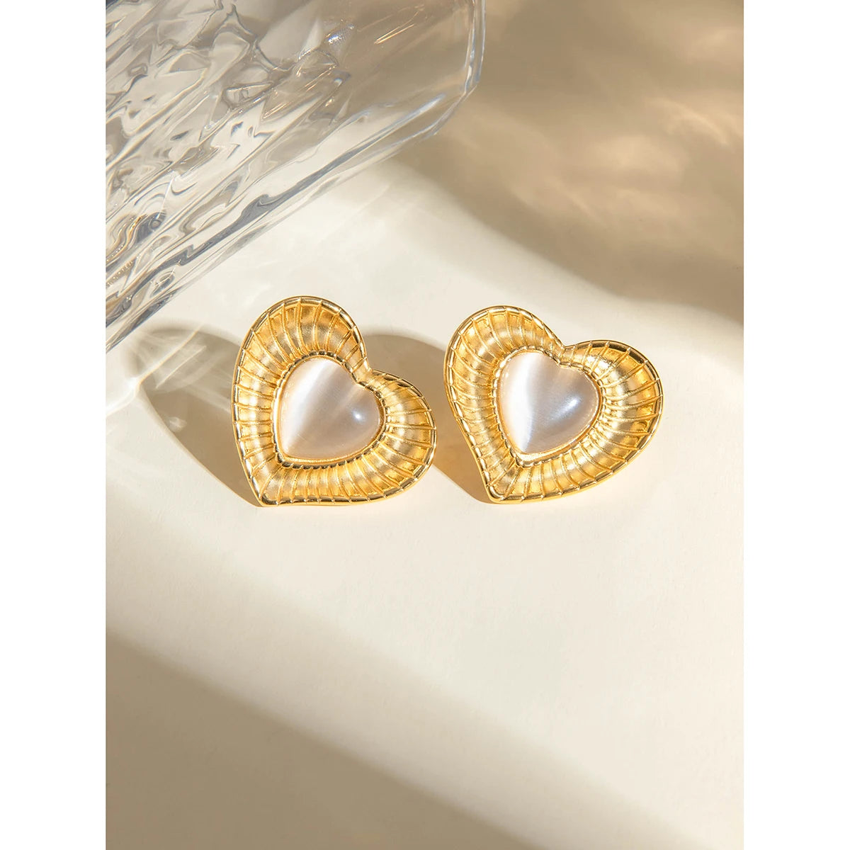 ステンレス304 低ニッケル 水に濡れても錆びにくい 18Kゴールドメッキ ピアス ハート 【YJ02240】