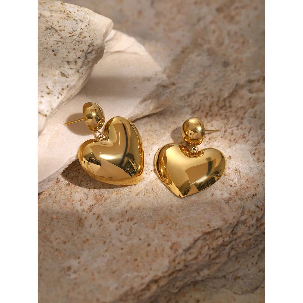 ステンレス304 低ニッケル 水に濡れても錆びにくい 18Kゴールドメッキ ピアス ハート 【YJ02255】