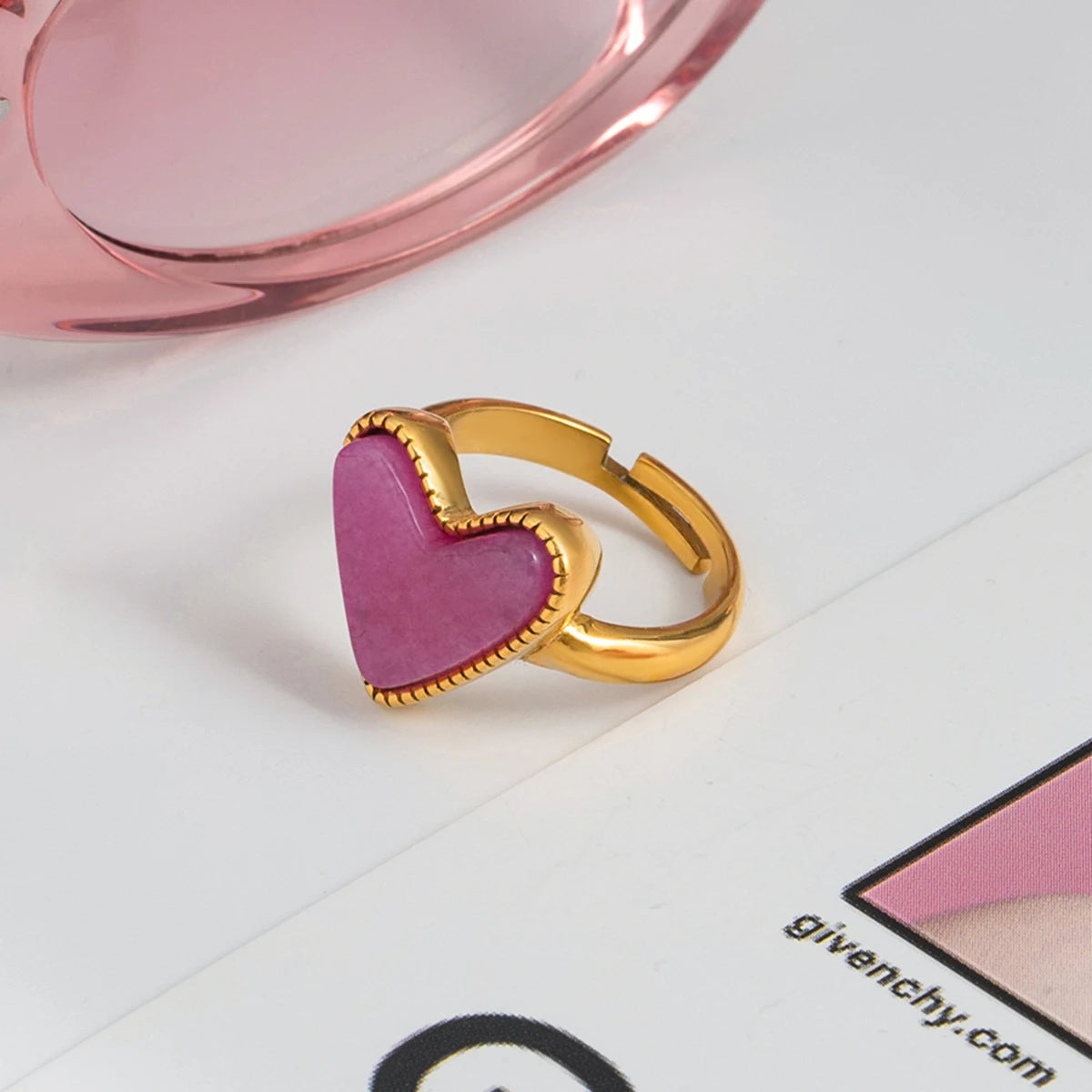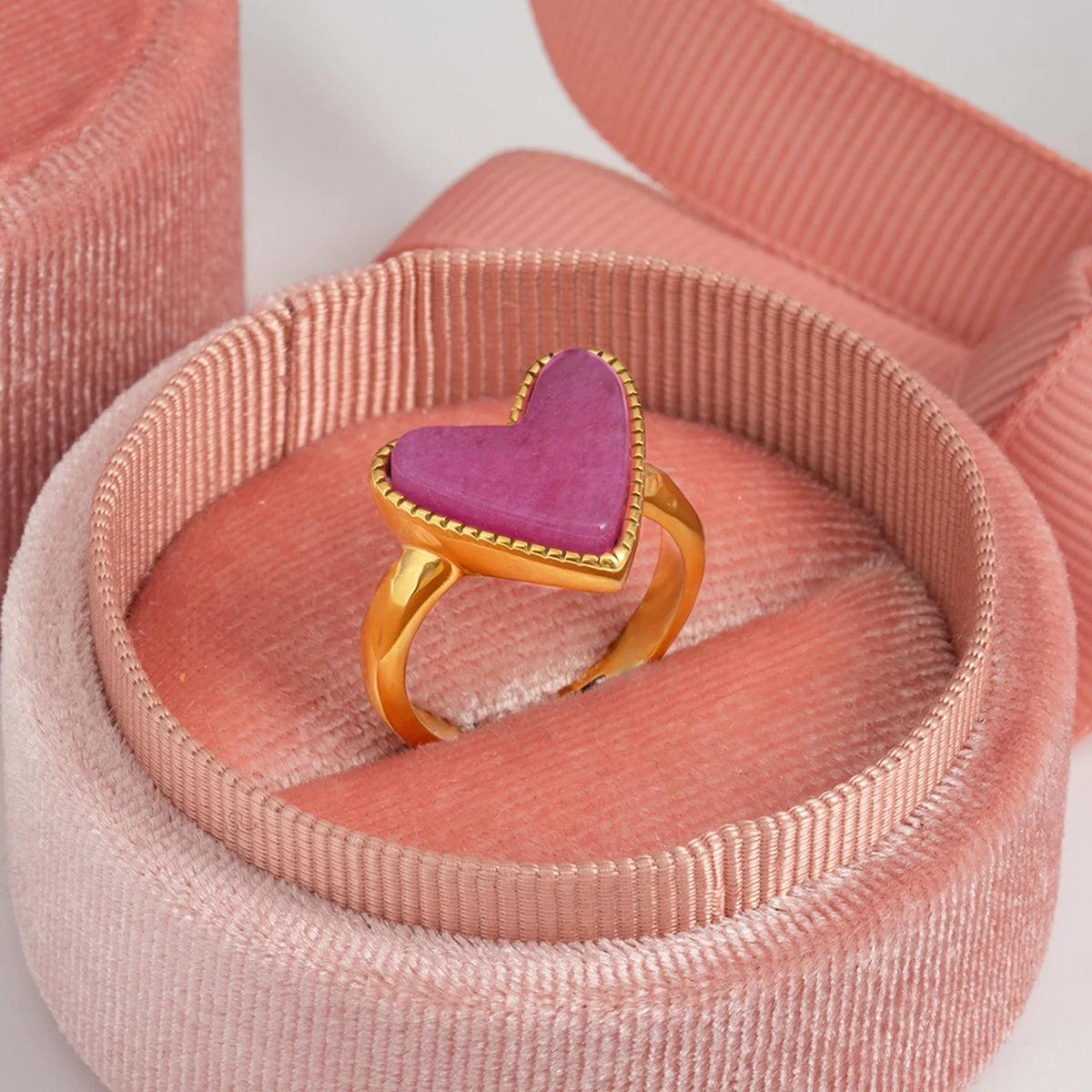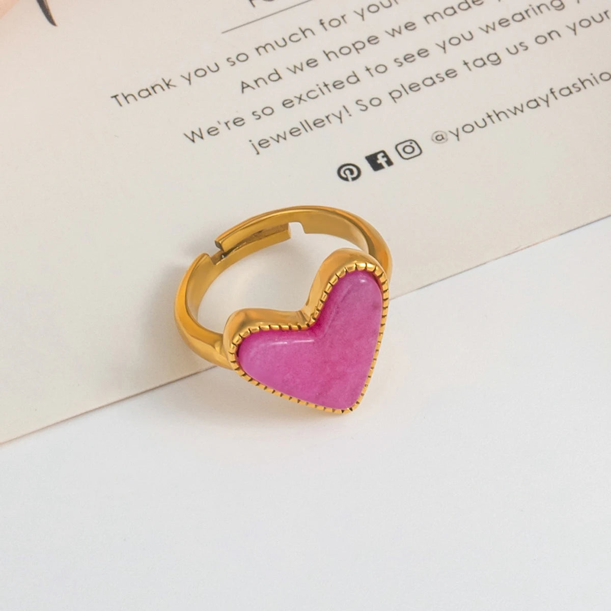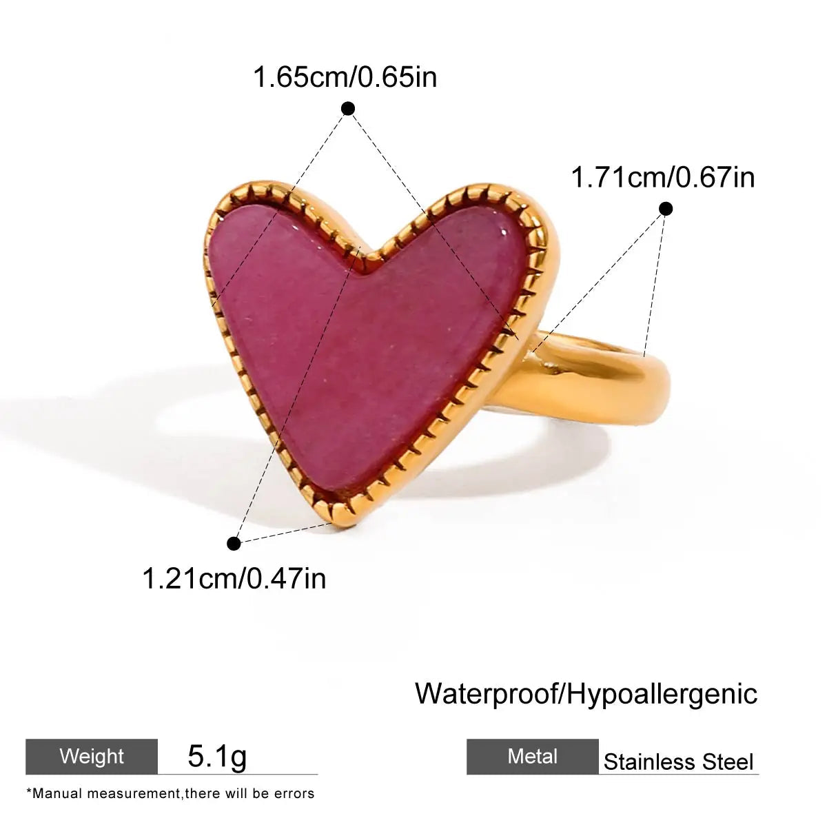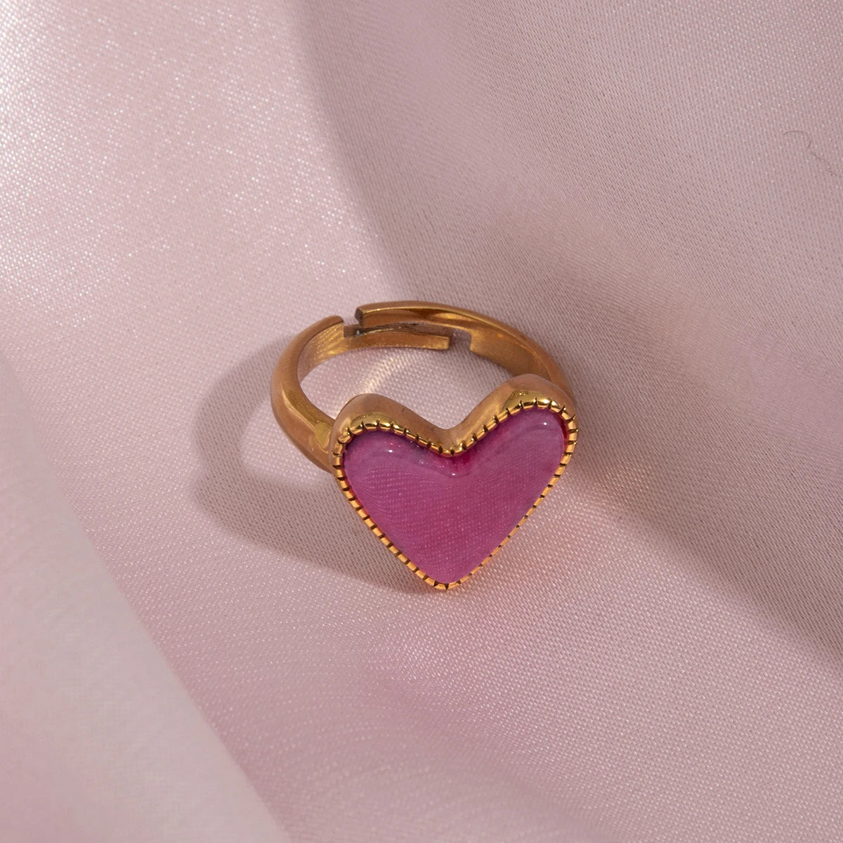 ステンレス304 低ニッケル 水に濡れても錆びにくい 18Kゴールドメッキ リング ハート 【YJ02482】