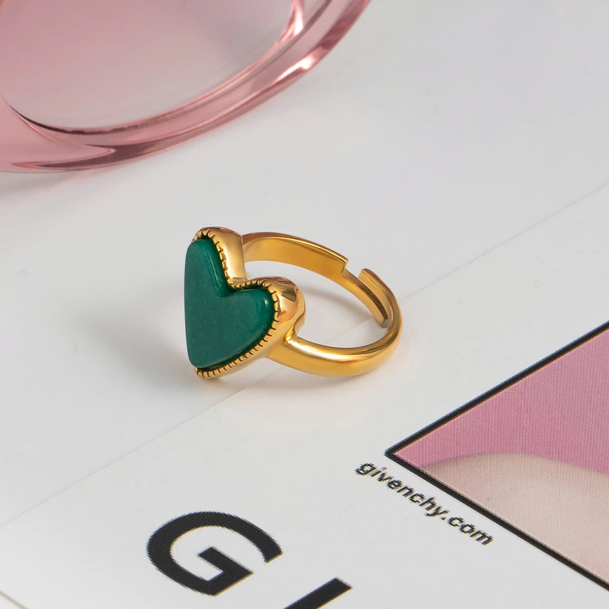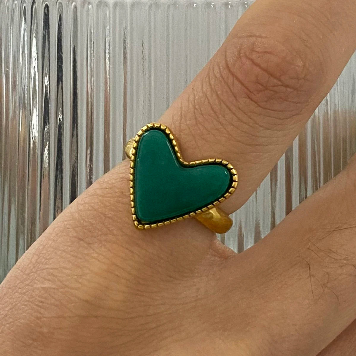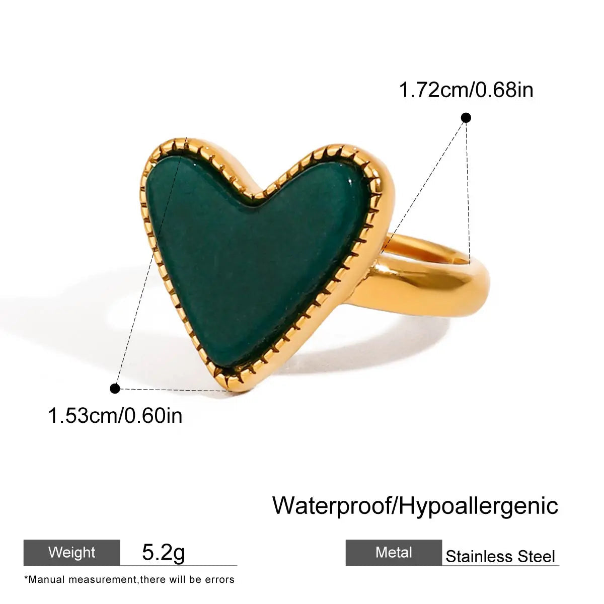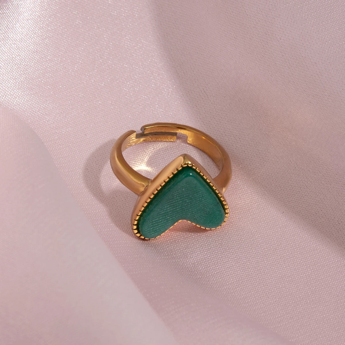ステンレス304 低ニッケル 水に濡れても錆びにくい 18Kゴールドメッキ リング ハート 【YJ02495】