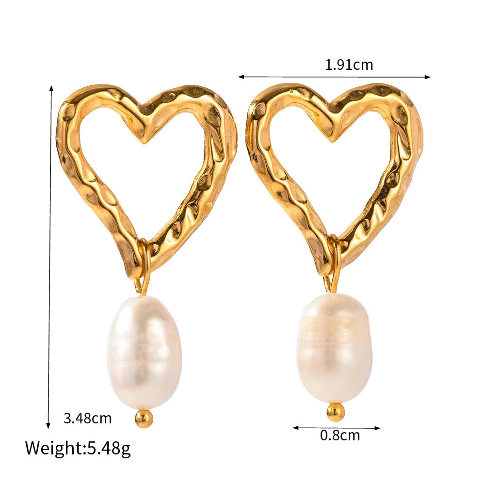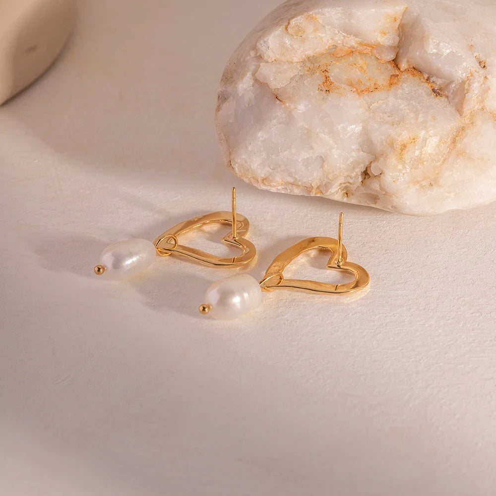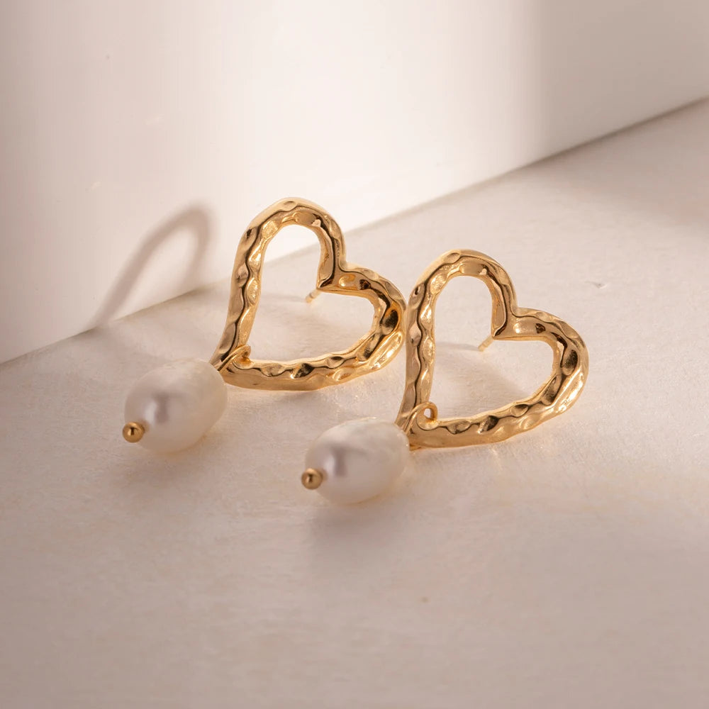 ステンレス304 低ニッケル 水に濡れても錆びにくい 18Kゴールドメッキ ピアス ハート パール 【YJ02605】