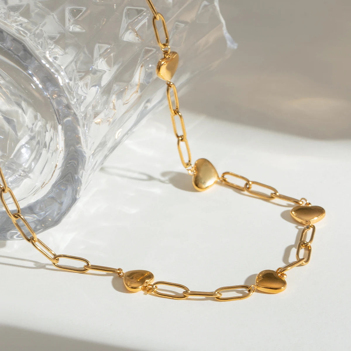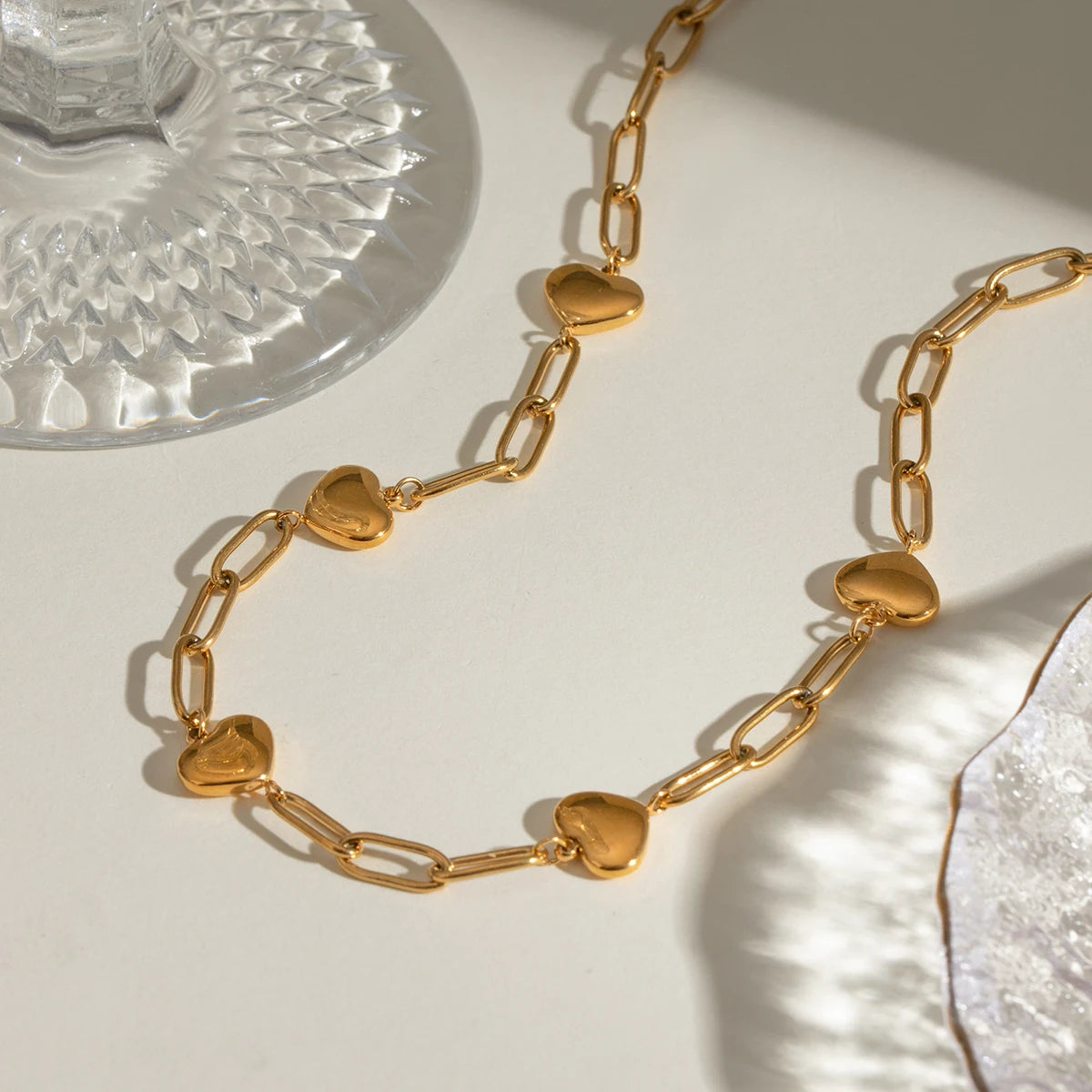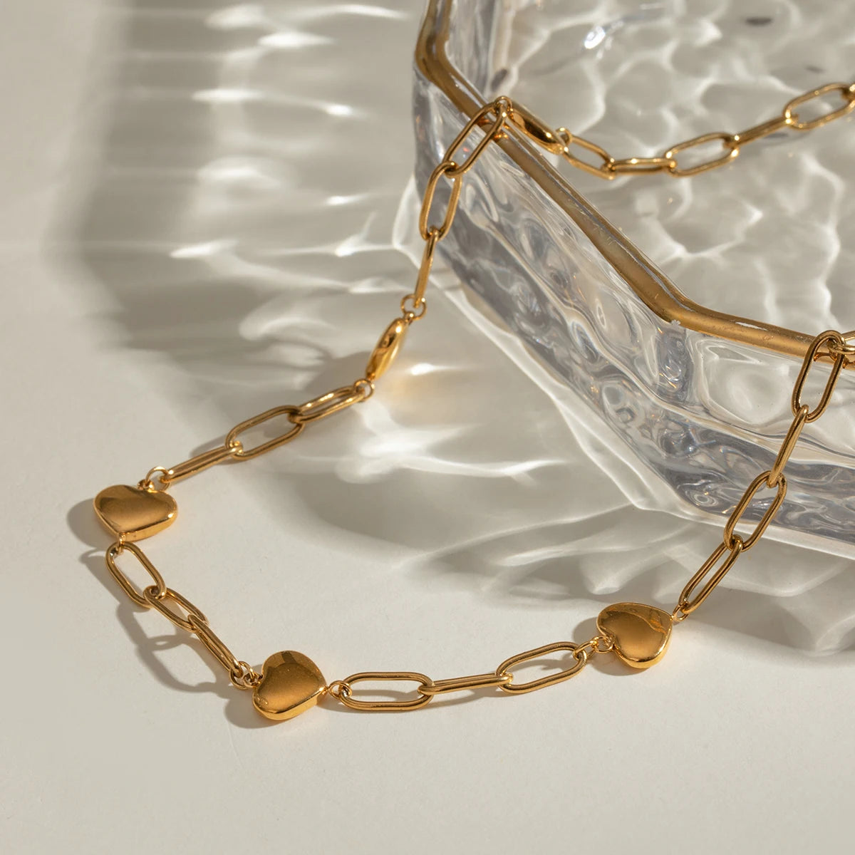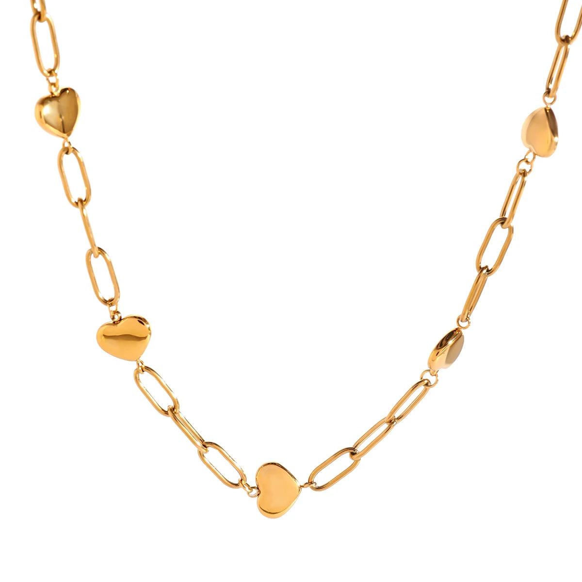 ステンレス304 低ニッケル 水に濡れても錆びにくい 18Kゴールドメッキ ネックレス ハート 【YJ02700】