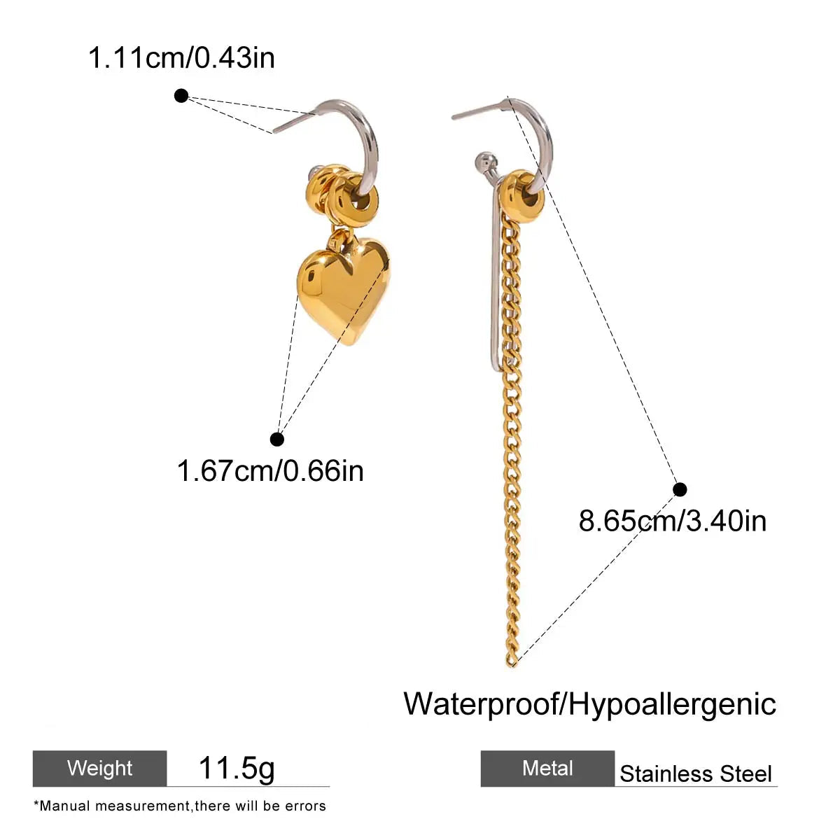 ステンレス304 低ニッケル 水に濡れても錆びにくい 18Kゴールドメッキ ピアス タッセル チェーン ハート 【YJ02925】