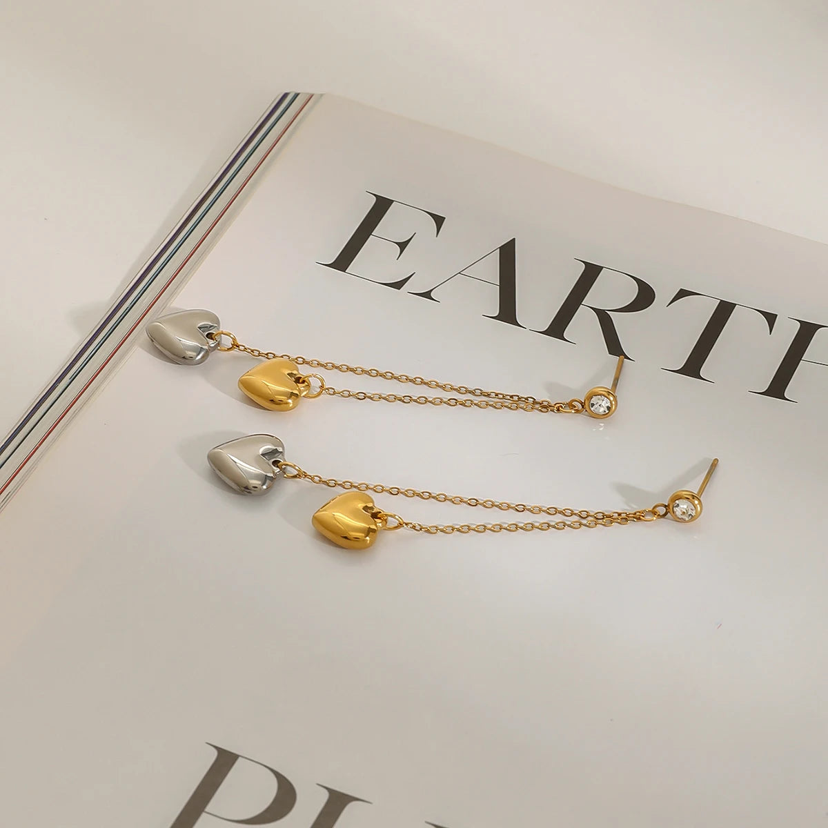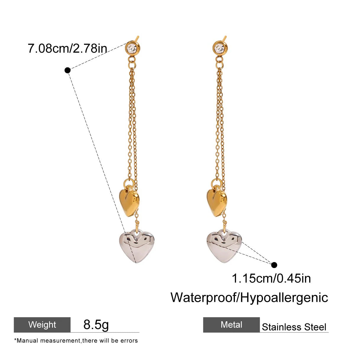 ステンレス304 低ニッケル 水に濡れても錆びにくい 18Kゴールドメッキ ピアス タッセル ハート 【YJ03014】