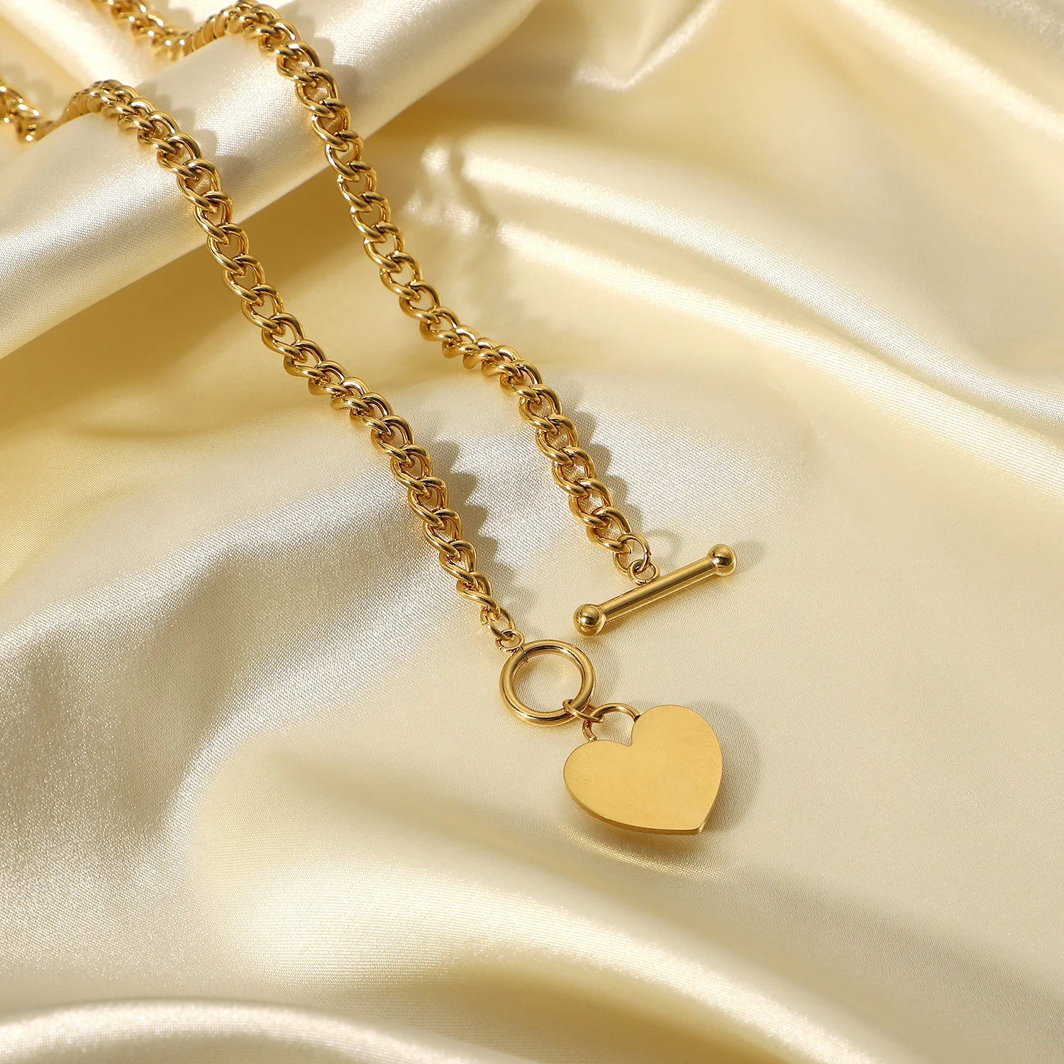 ステンレス304 低ニッケル 水に濡れても錆びにくい 18Kゴールドメッキ ネックレス ハート 【YJ03096】