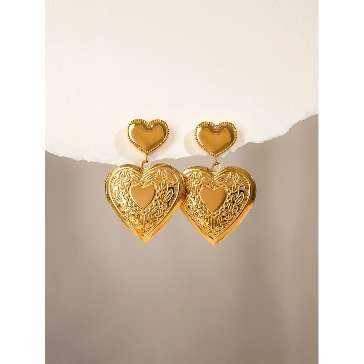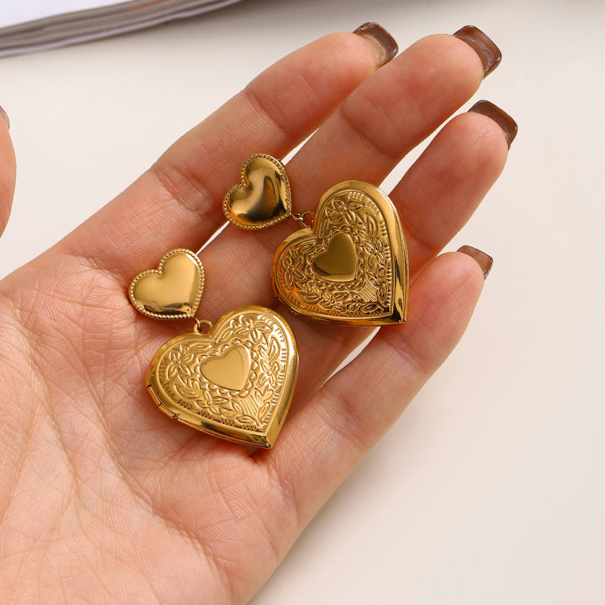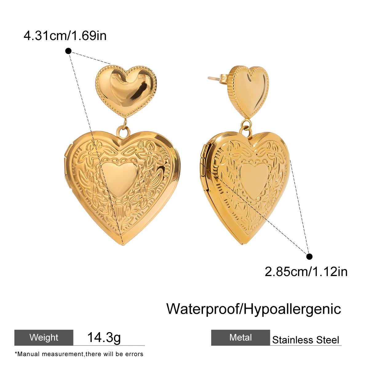 ステンレス304 低ニッケル 水に濡れても錆びにくい 18Kゴールドメッキ ピアス ハート 写真入れ ロケットペンダント【YJ03136】