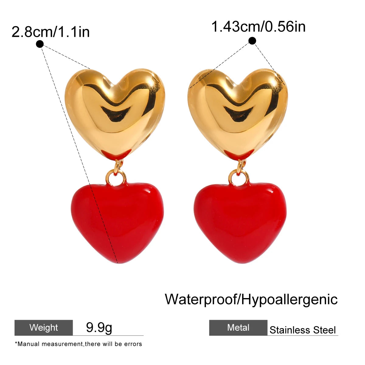 ステンレス304 低ニッケル 水に濡れても錆びにくい 18Kゴールドメッキ ピアス ハート 【YJ03253】